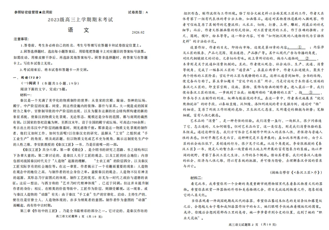 🙅【2026年日照高三期末试题答案答案】PDF可打印版领取方式如下: