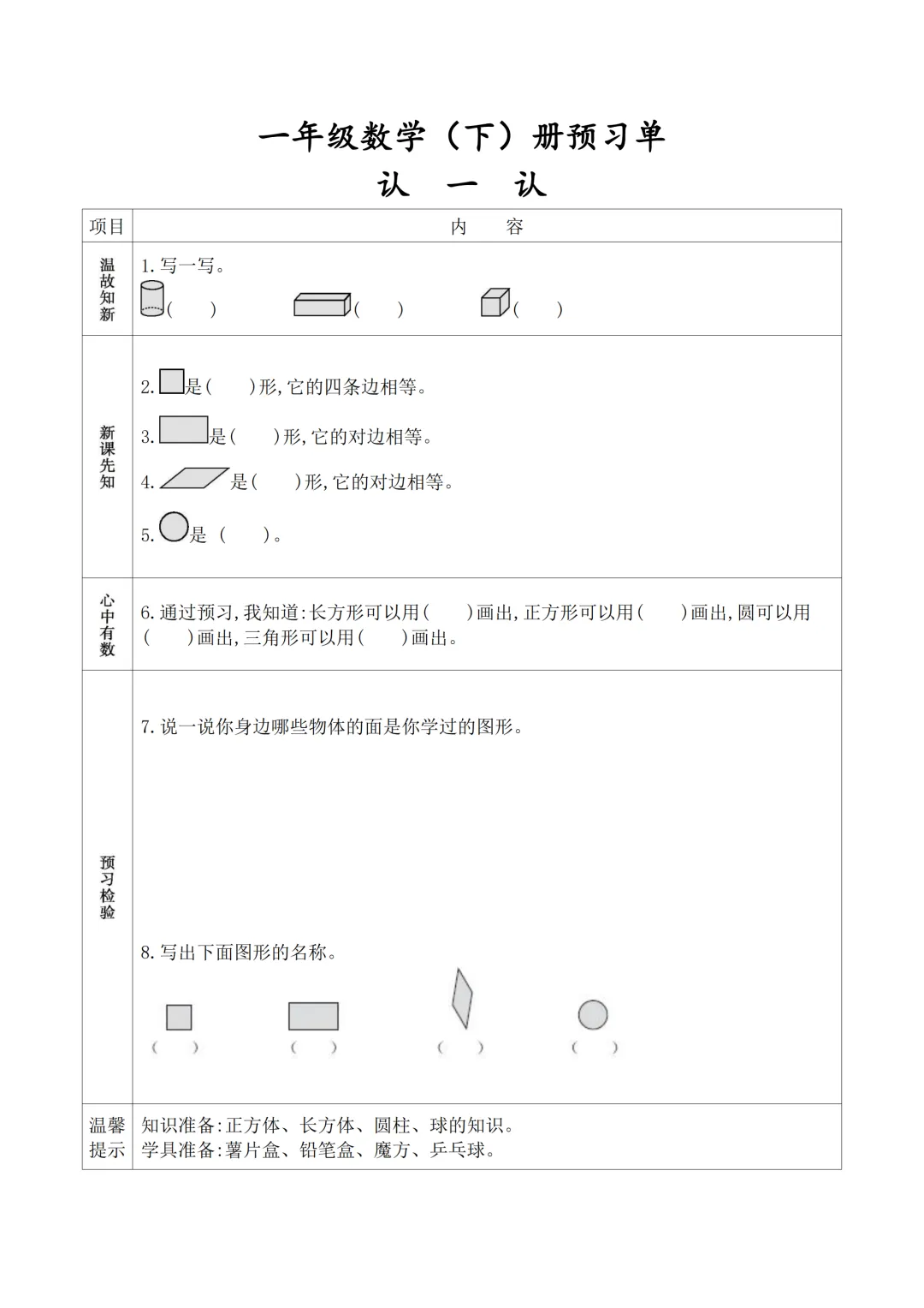 【免费下载】1-6年级人教版数学下册《课前预习单》| 可下载打印