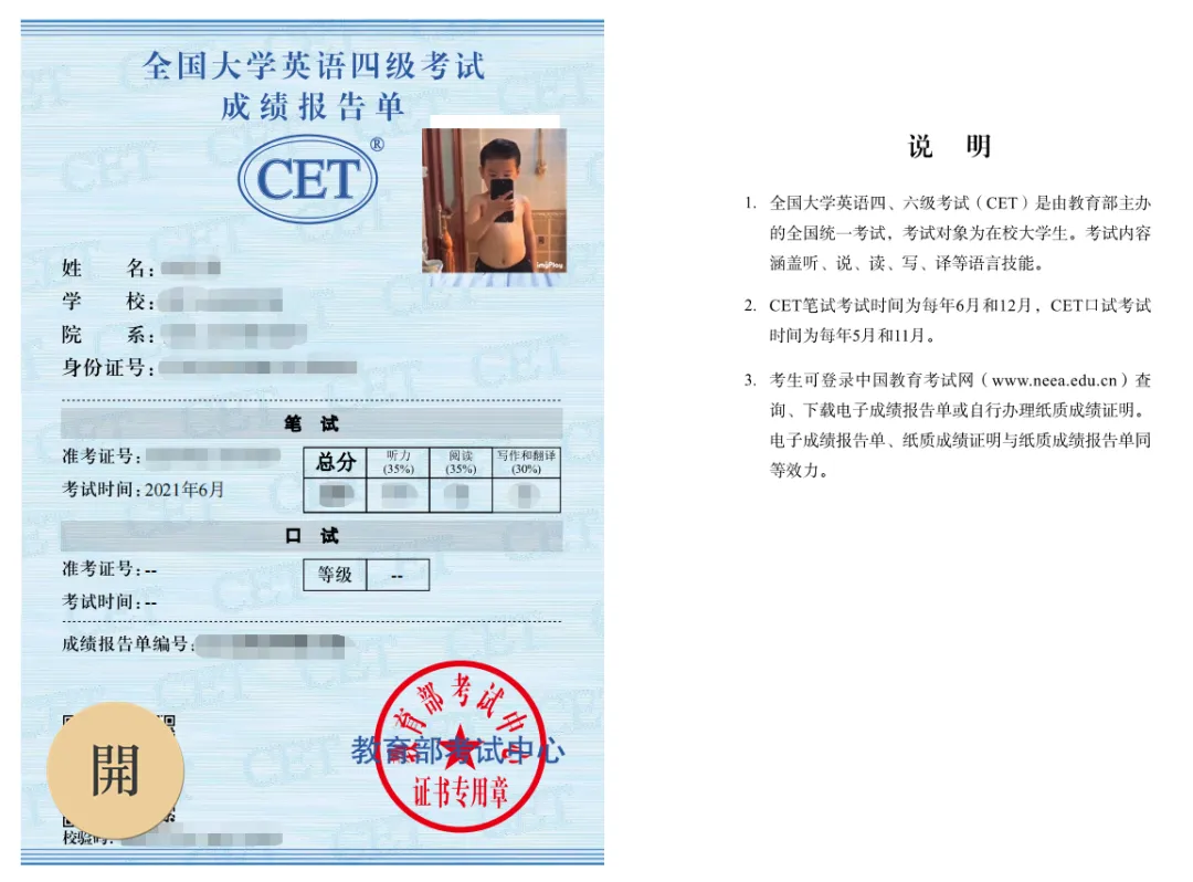 四六级证书(电子版)样式!