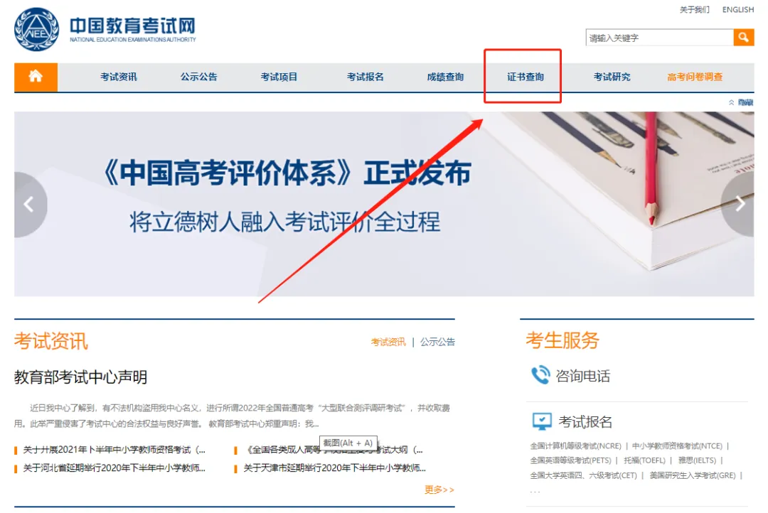 进入中国教育考试网