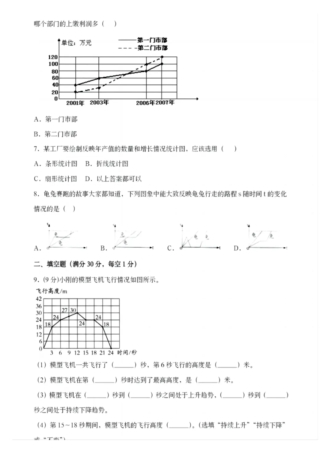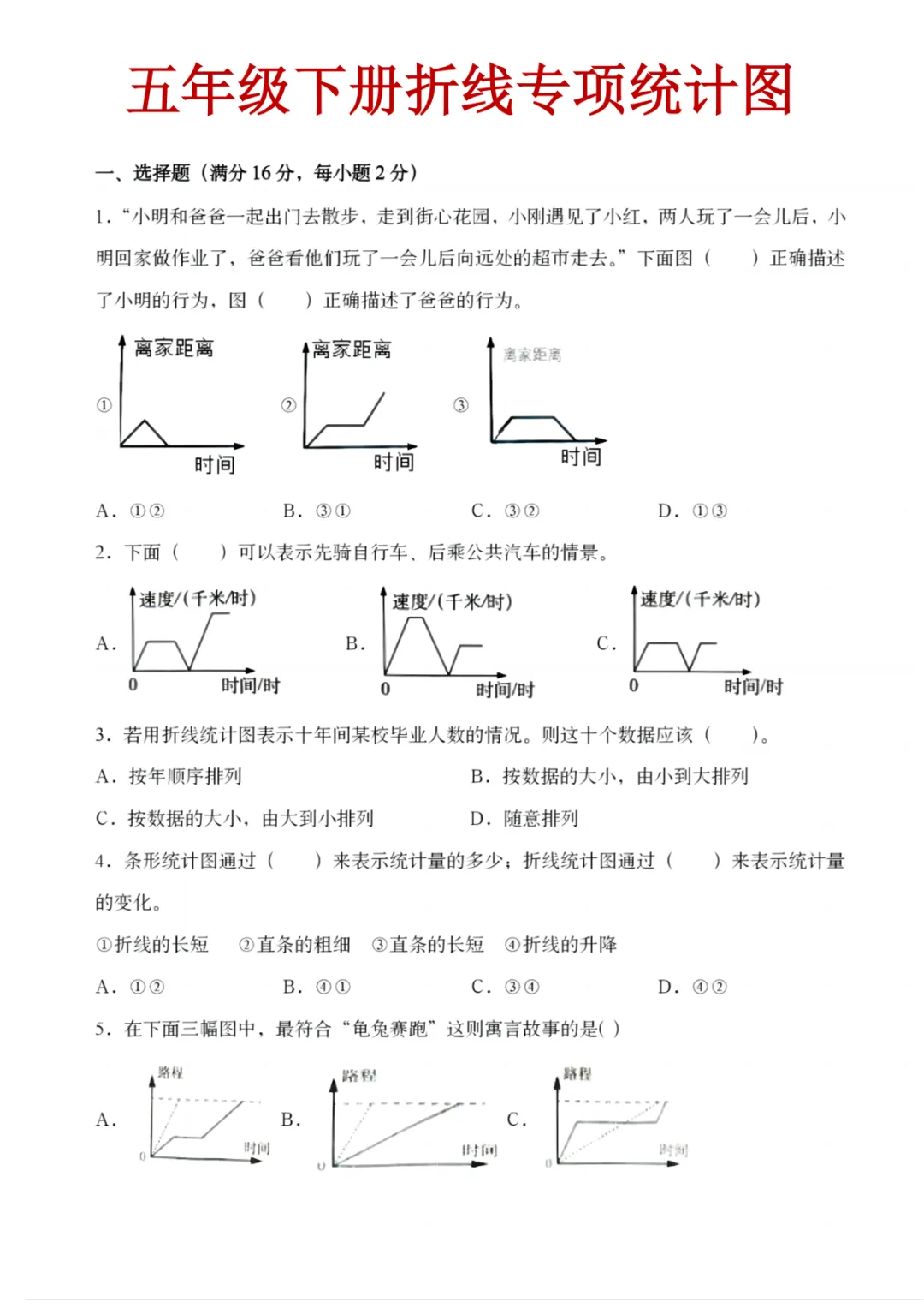 【免费下载】五年级(下)数学 折线统计图2专项练习,PDF电子版,可打印