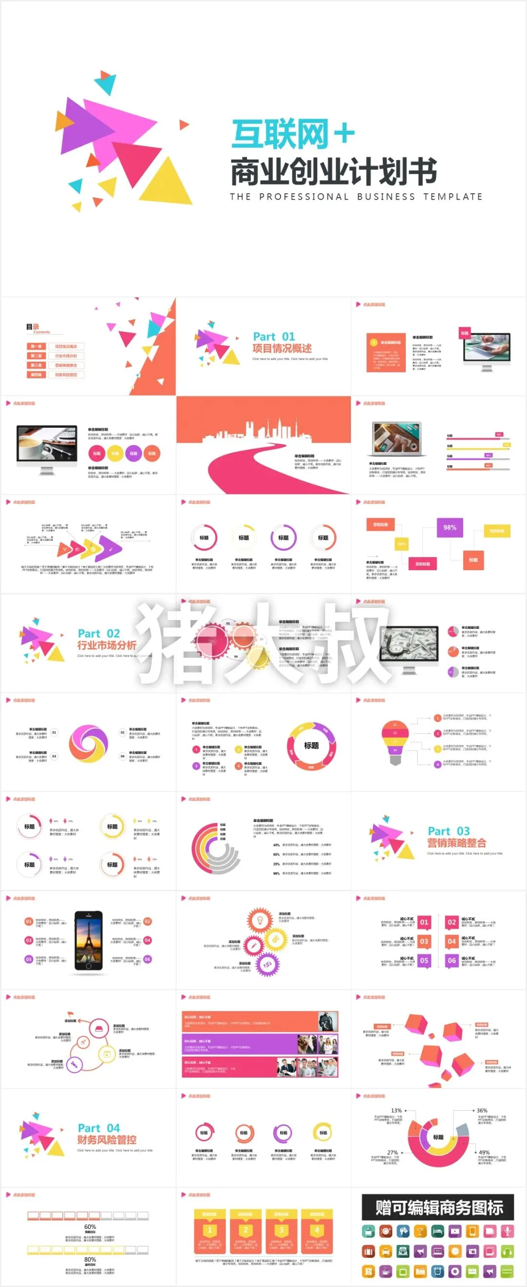 - 全套资源包:含多套主题模板、配套素材(图标 / 背景 / 字体)、可直接复用的专业配色方案