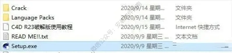 1、下载解压安装包,得到C4D R23安装程序和破解补丁文件,运行setup.exe开始安装软件