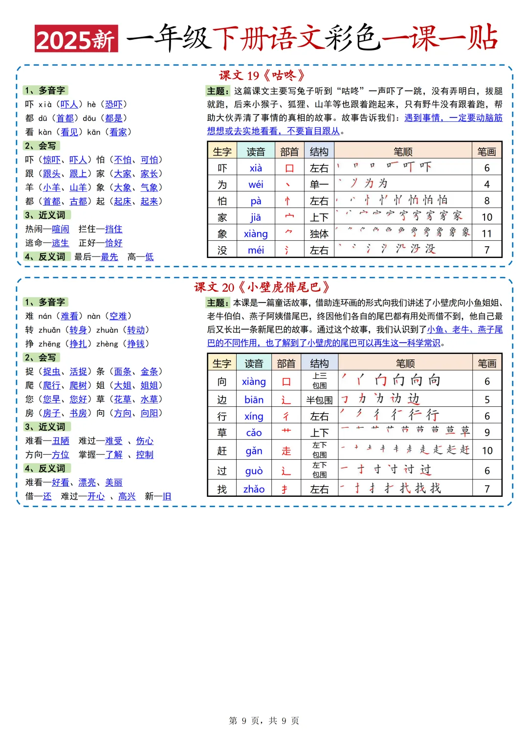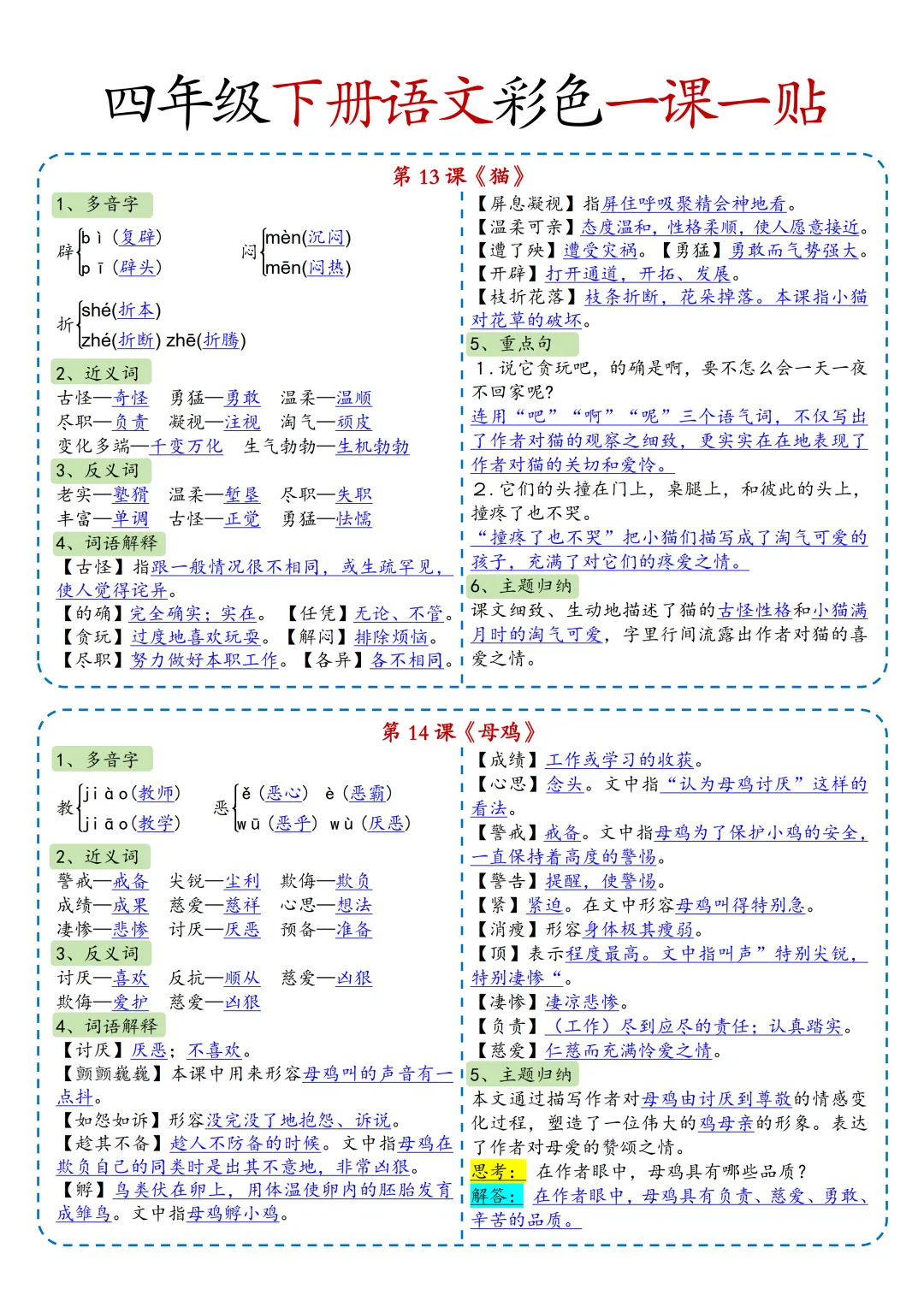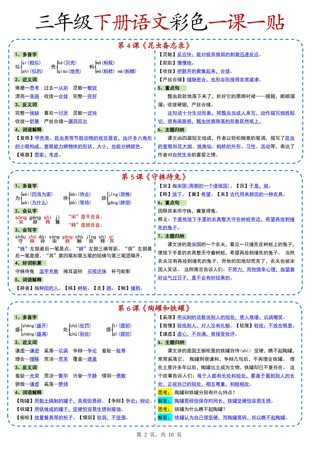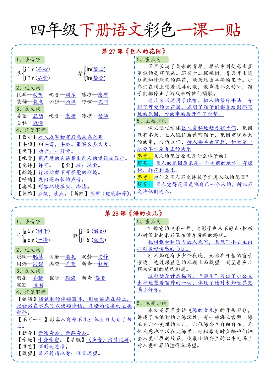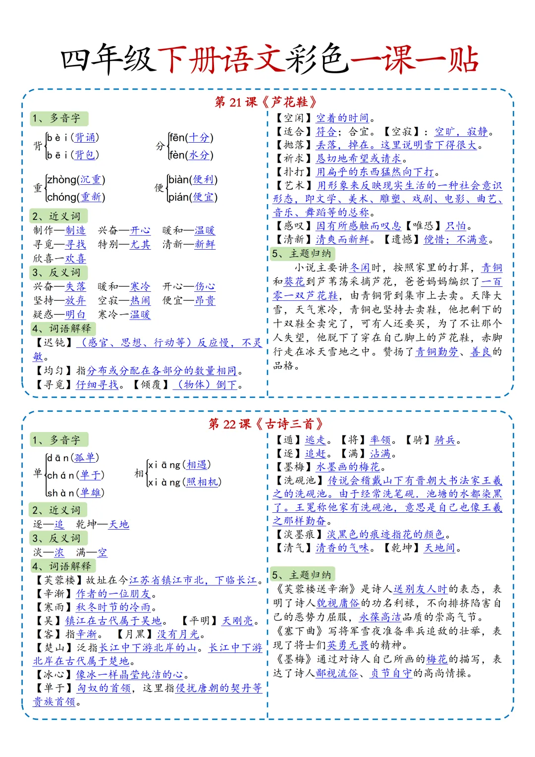 本期为大家带来的是小学语文1-6年级下册的一课一贴,是寒假预习的好帮手,包括每一课的重点字词,课文中心意思的归纳等等,PDF电子版在文章末尾下载。