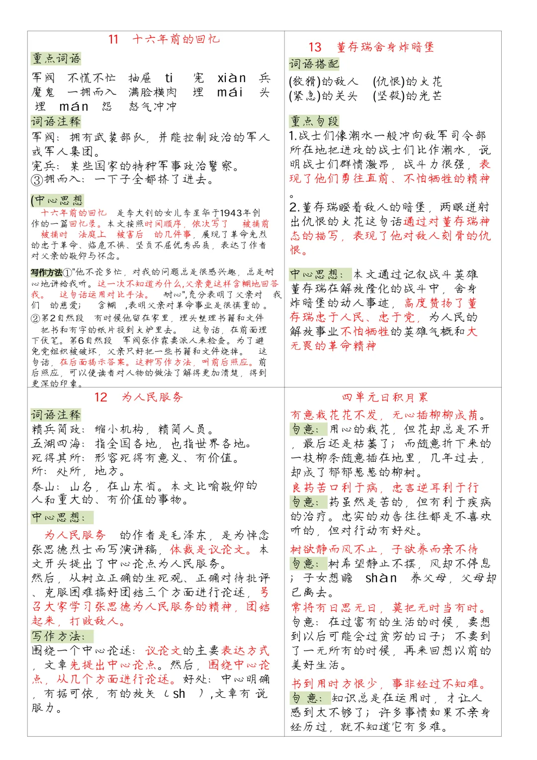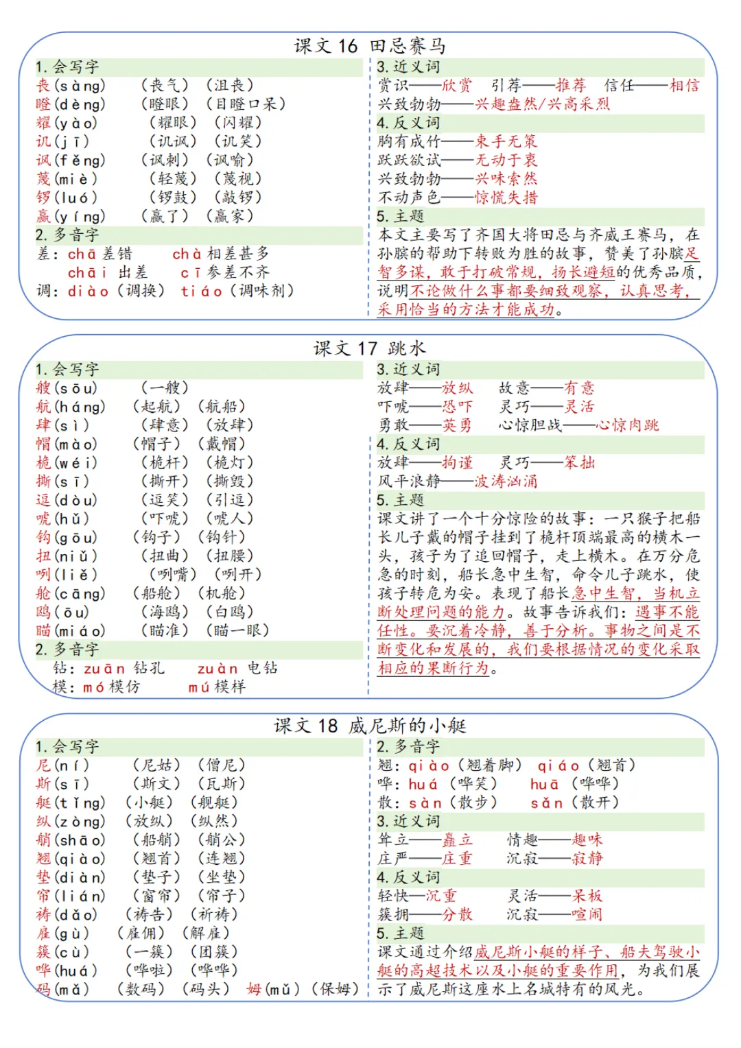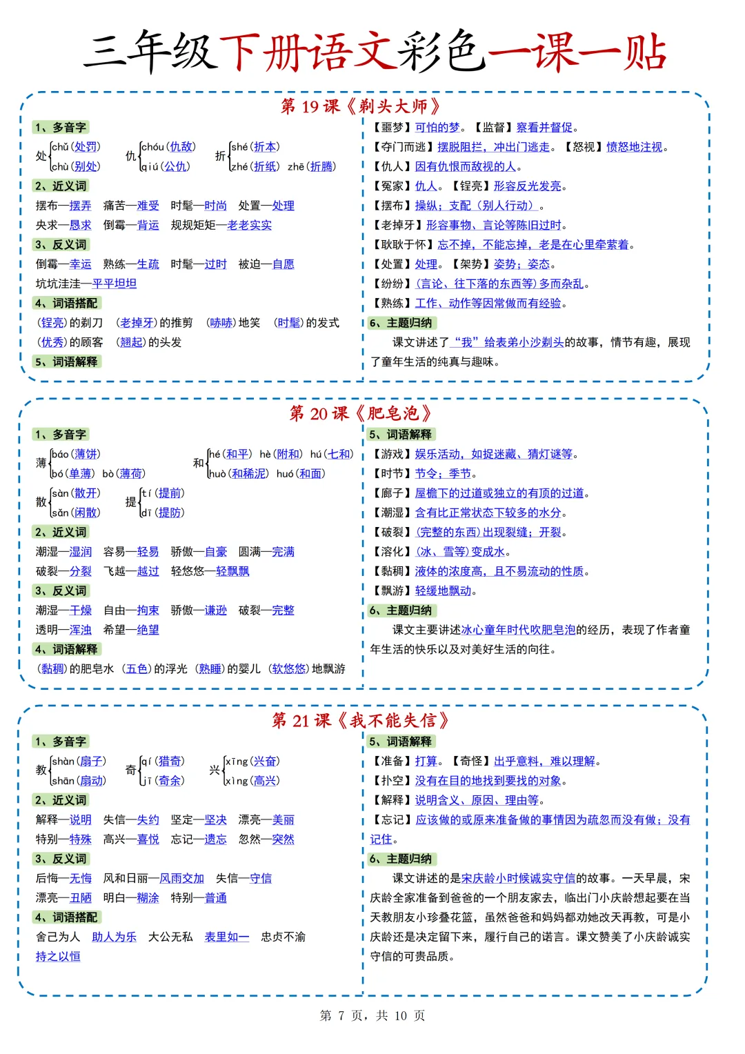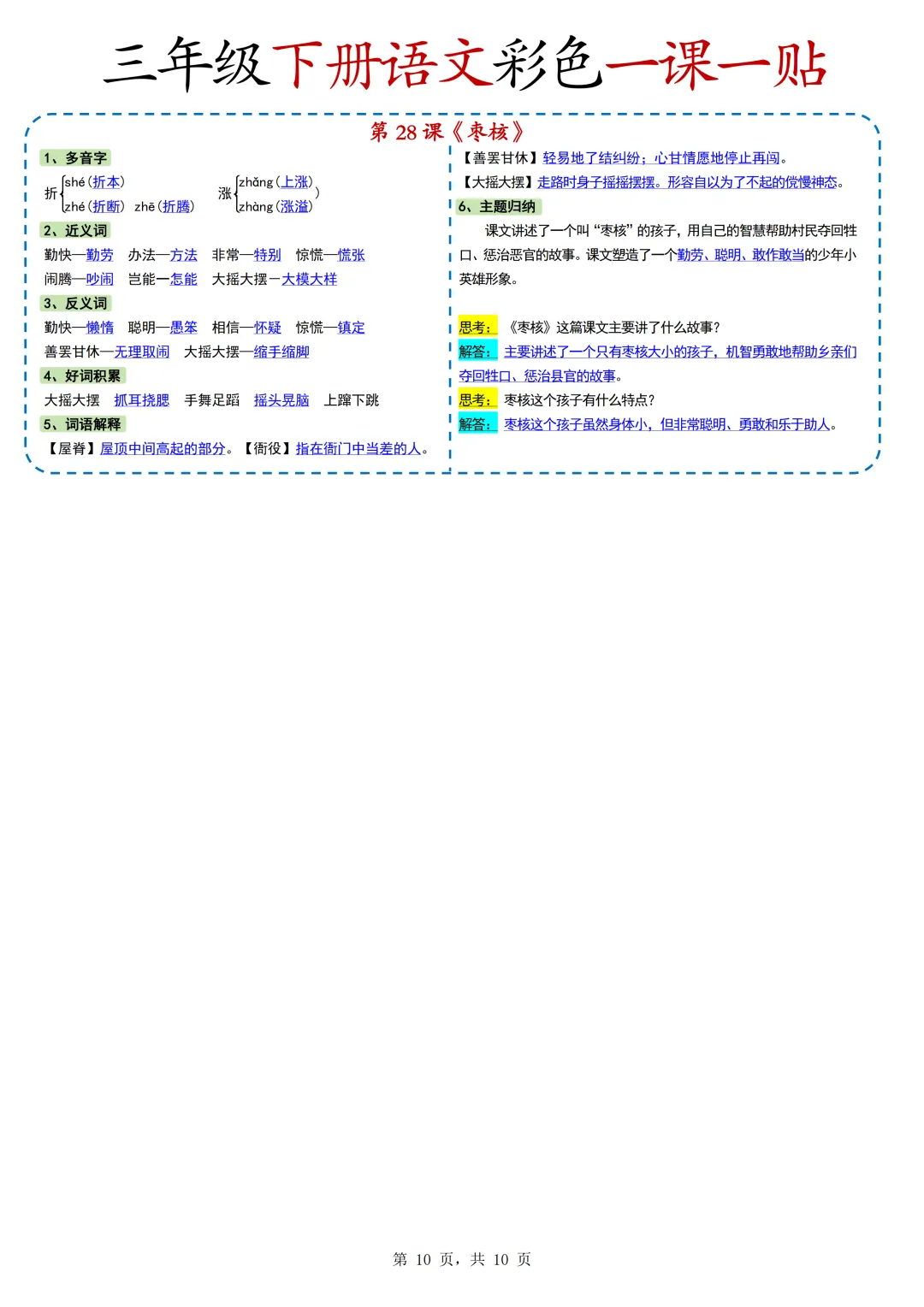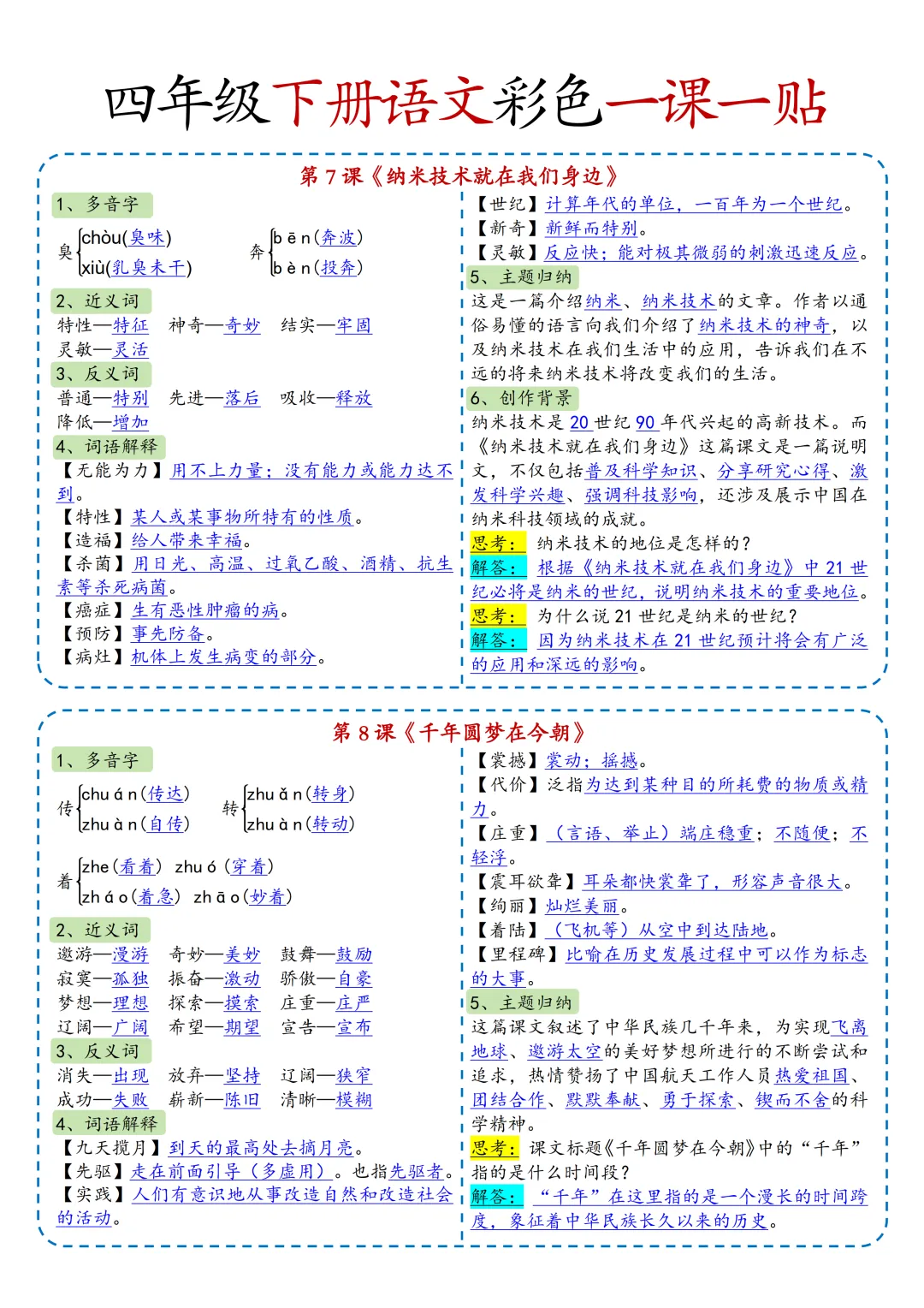 本期为大家带来的是小学语文1-6年级下册的一课一贴,是寒假预习的好帮手,包括每一课的重点字词,课文中心意思的归纳等等,PDF电子版在文章末尾下载。