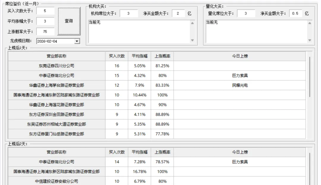 相比于其他龙虎榜,这个最大的优点是,根据历史数据,统计了不同席位买入后的上涨概率。