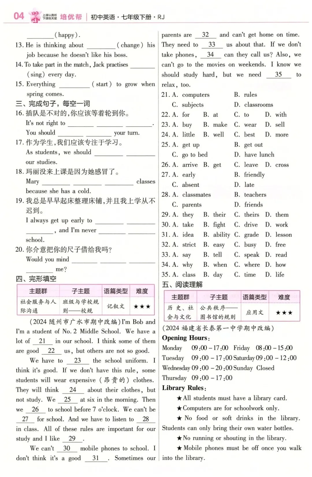 新七年级英语上、下册寒假学习必备资料包,免费分享