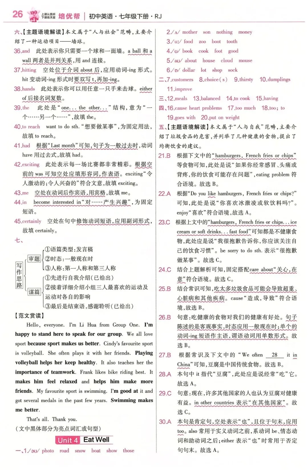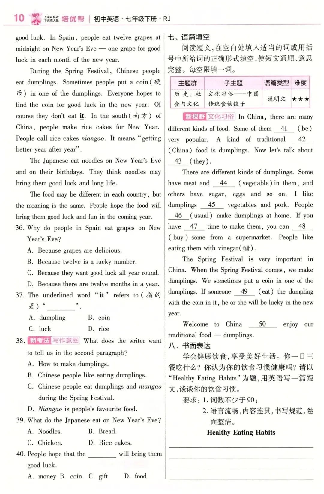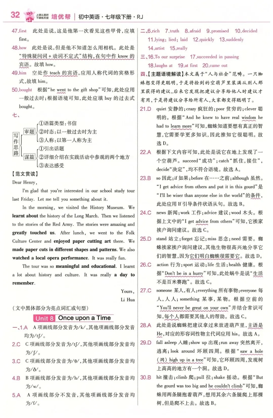 人教版英语七年级下册新教材学习资料包免费分享链接: