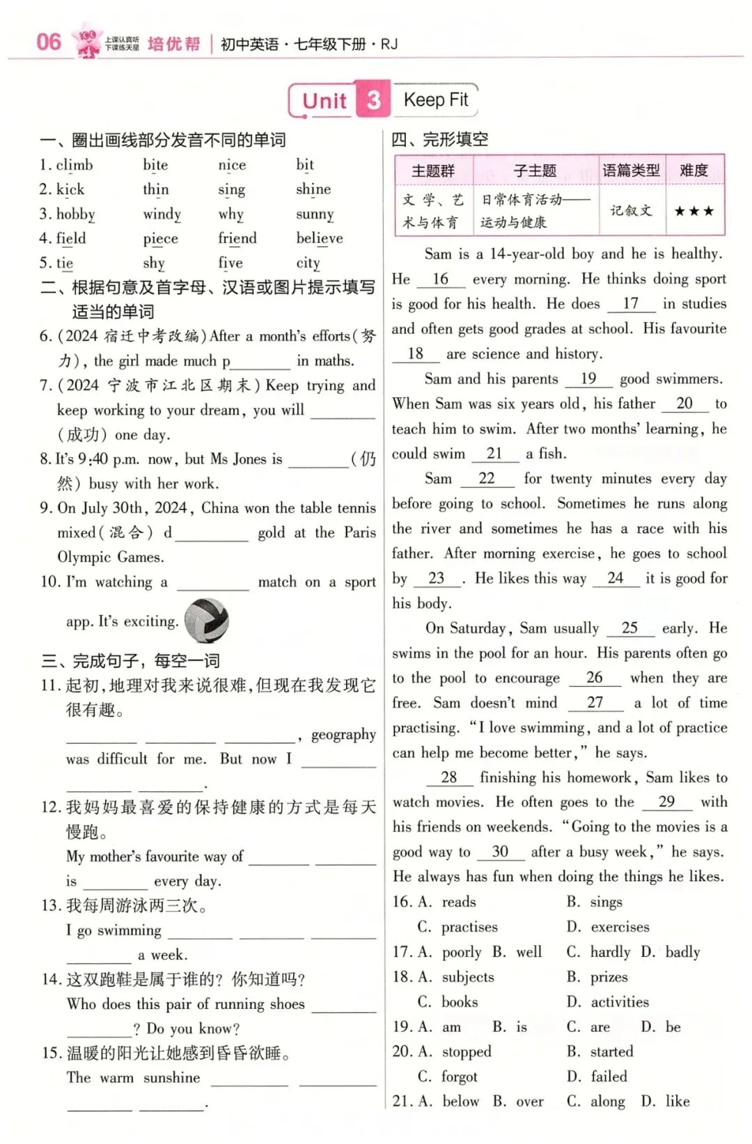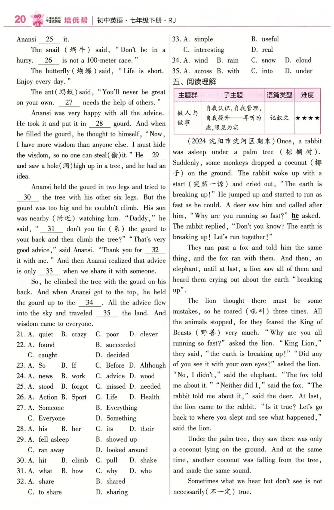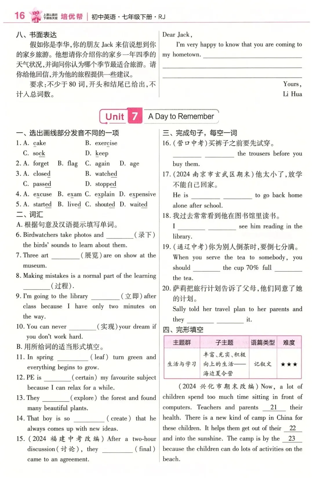 人教版英语七年级下册新教材学习资料包免费分享链接: