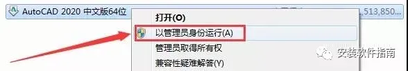2.打开解压后的文件夹,右键点击,以管理员身份运行AutoCAD 2020