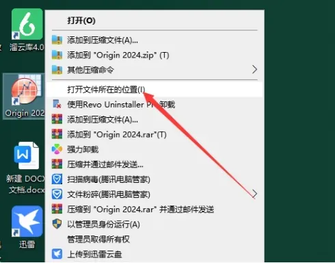 21. 选择桌面的【Origin 2024】软件,鼠标右键点击【打开文件所在位置】,进入安装目录。
