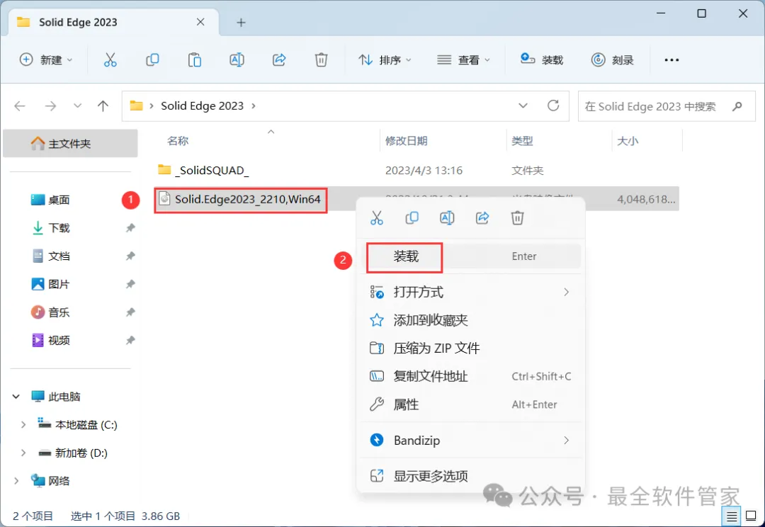 3、找到【Solid.Edge2023】文件,右键点击【装载】