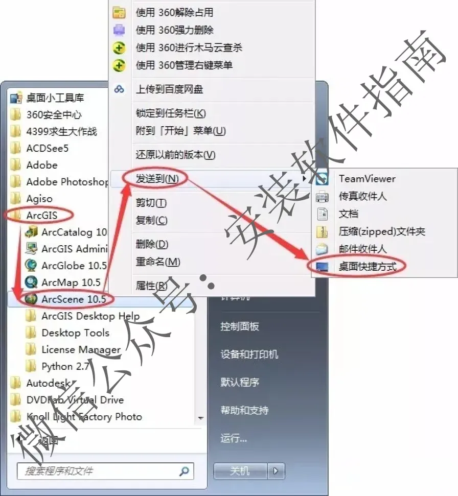 54.OK安装完成,GIS不会直接出现在桌面,然后打开菜单然后发送到桌面