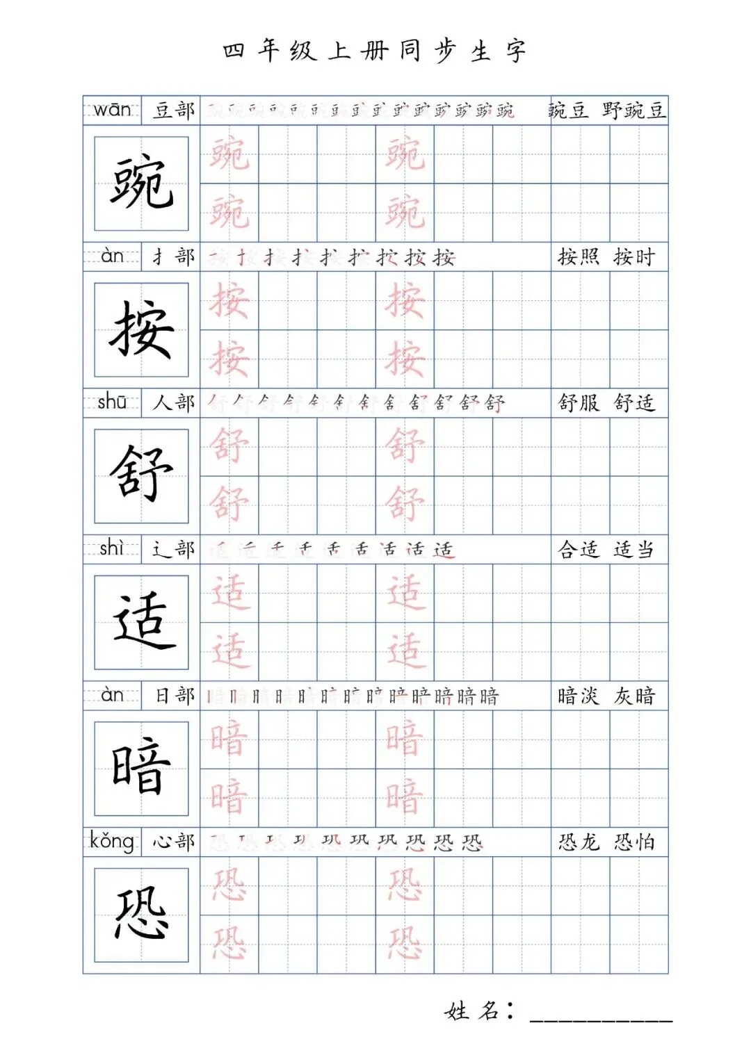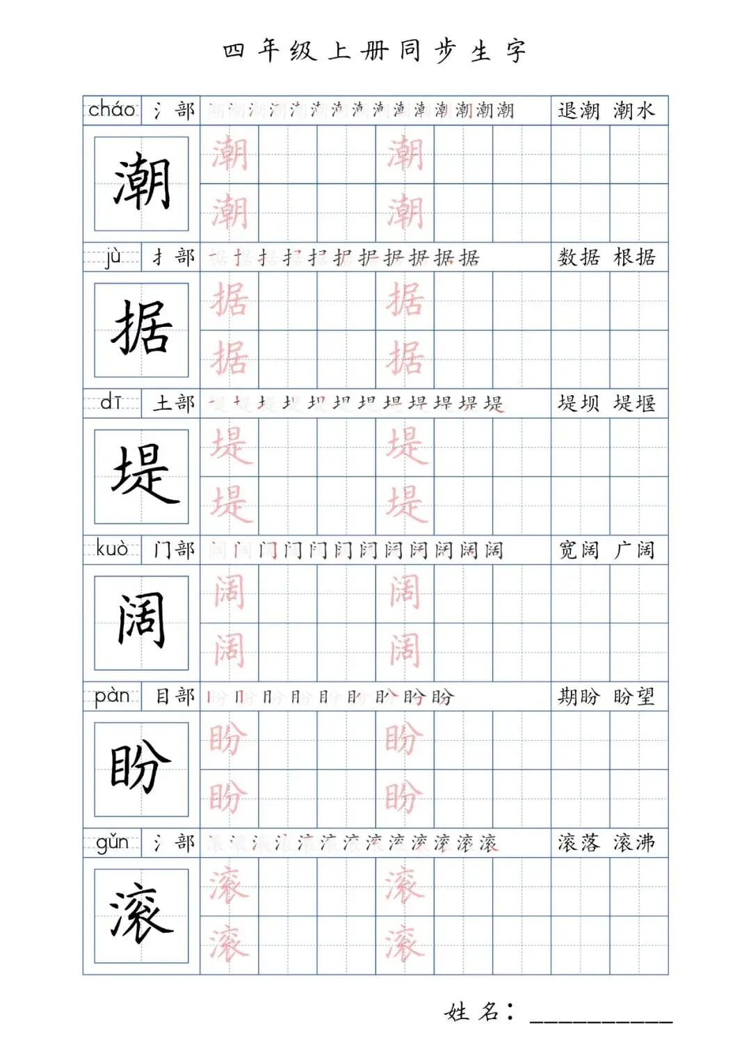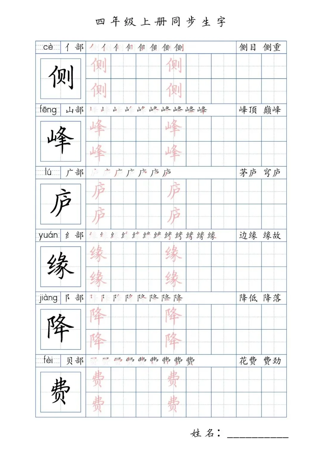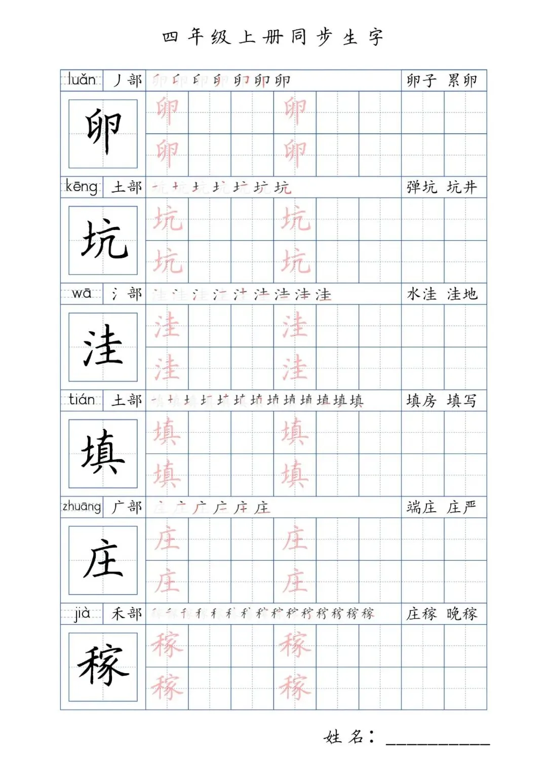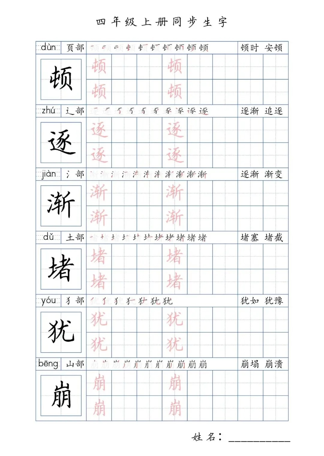 同步生字四年级上册,PDF免费下载