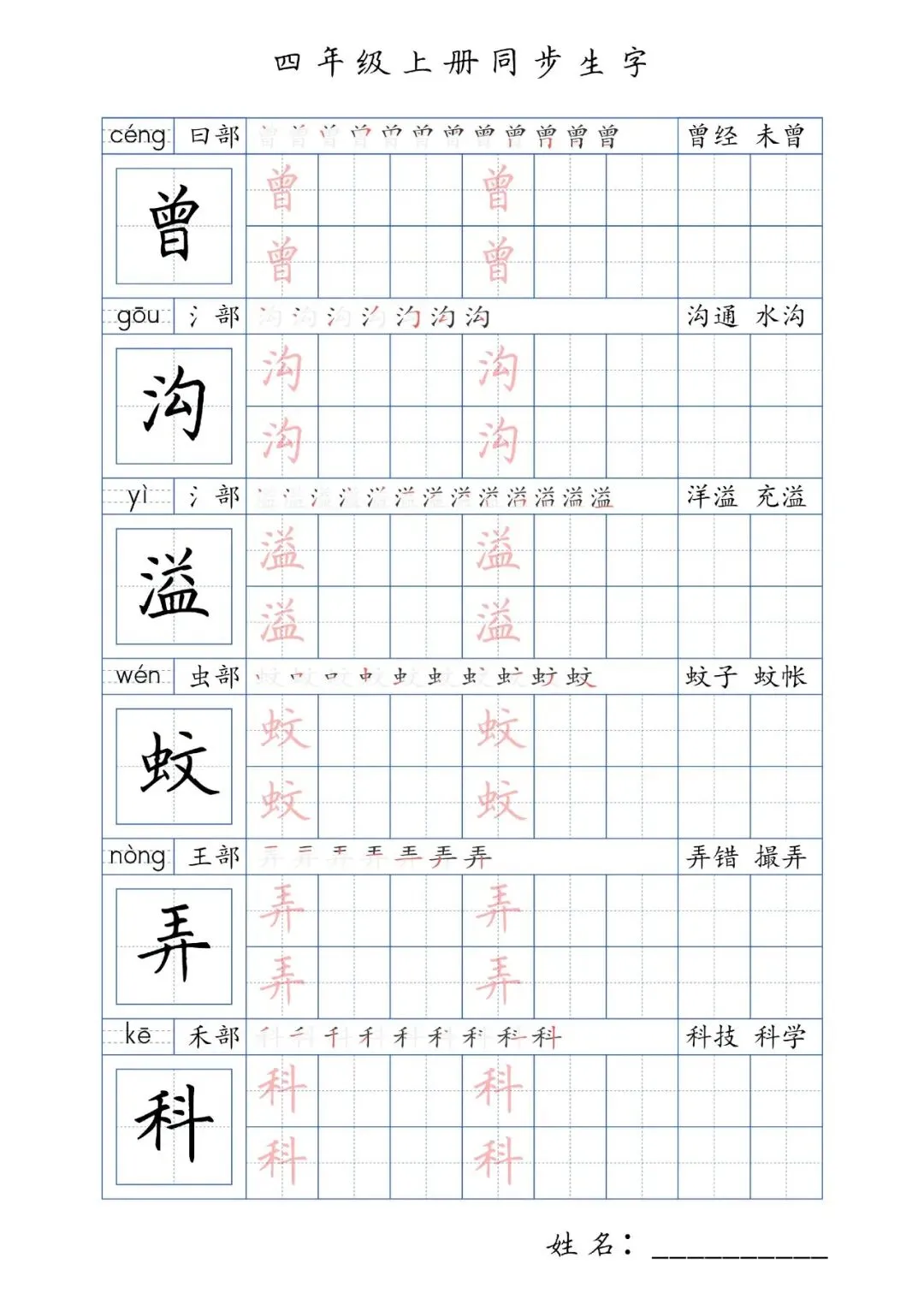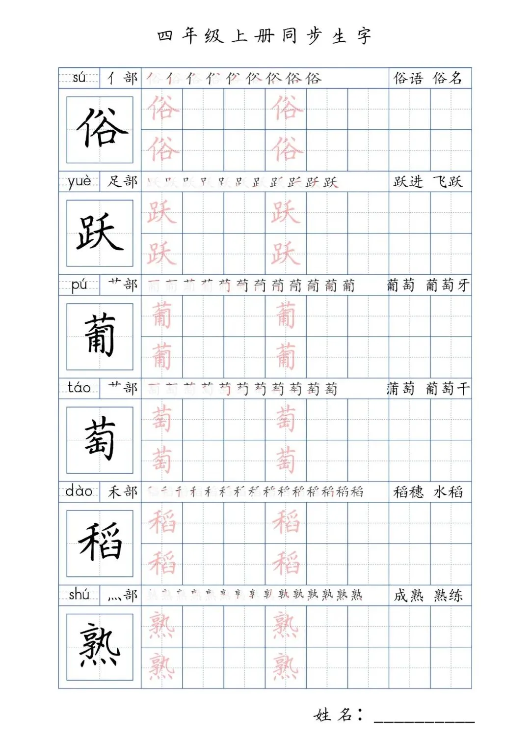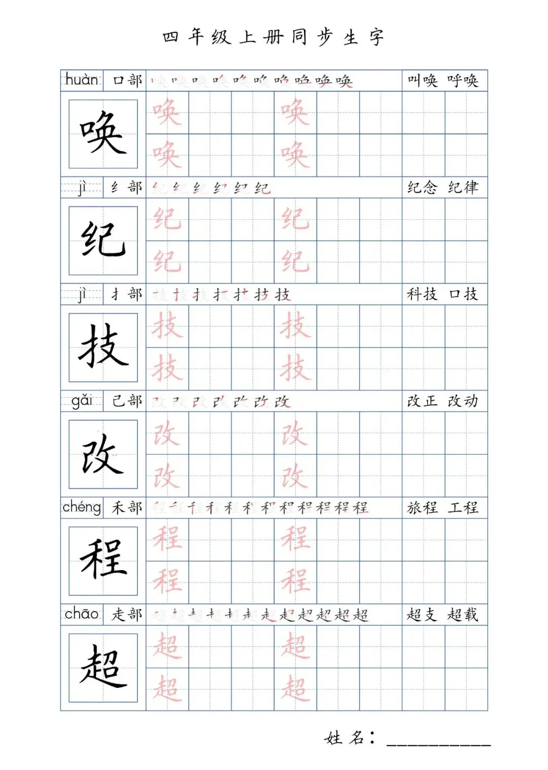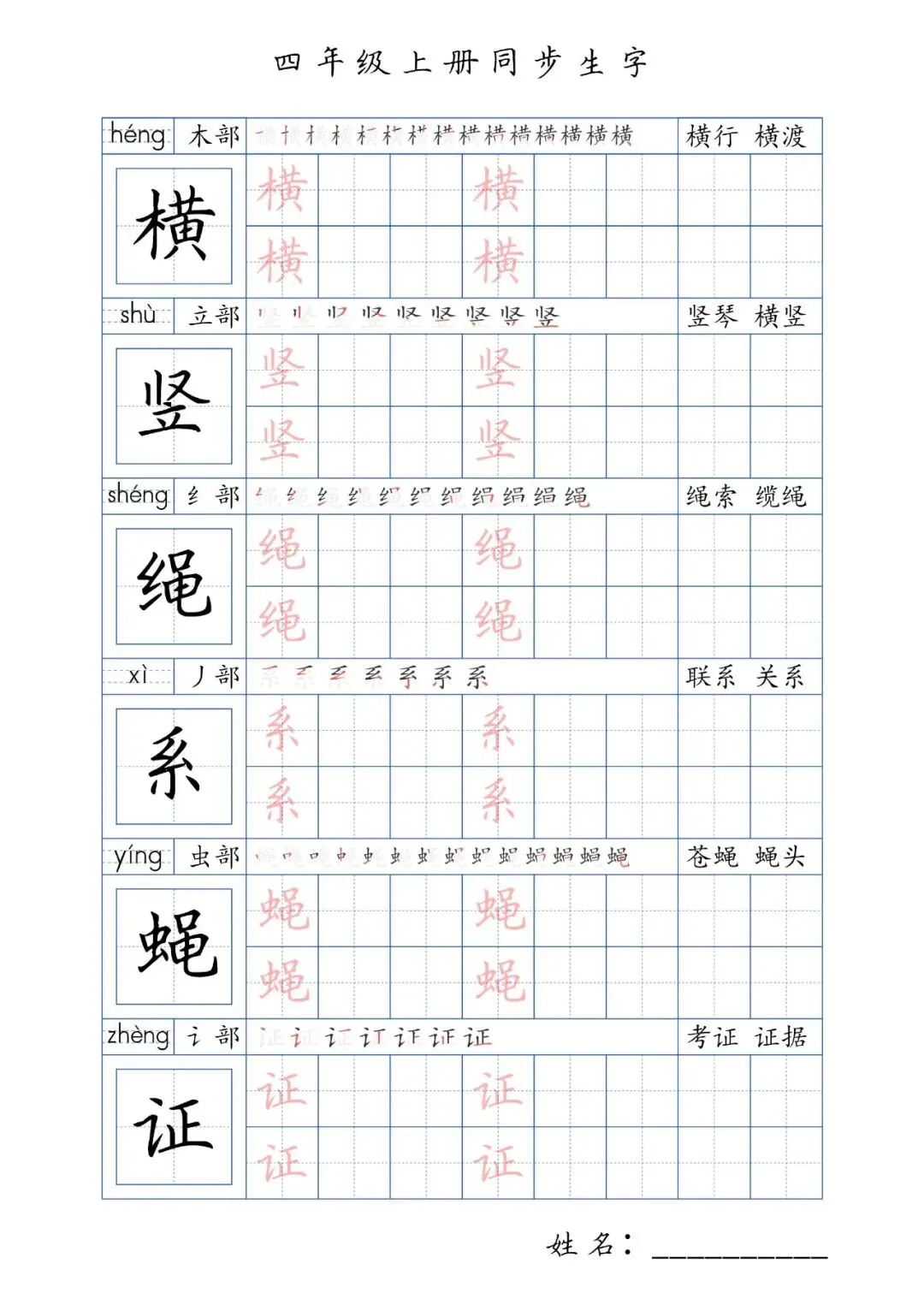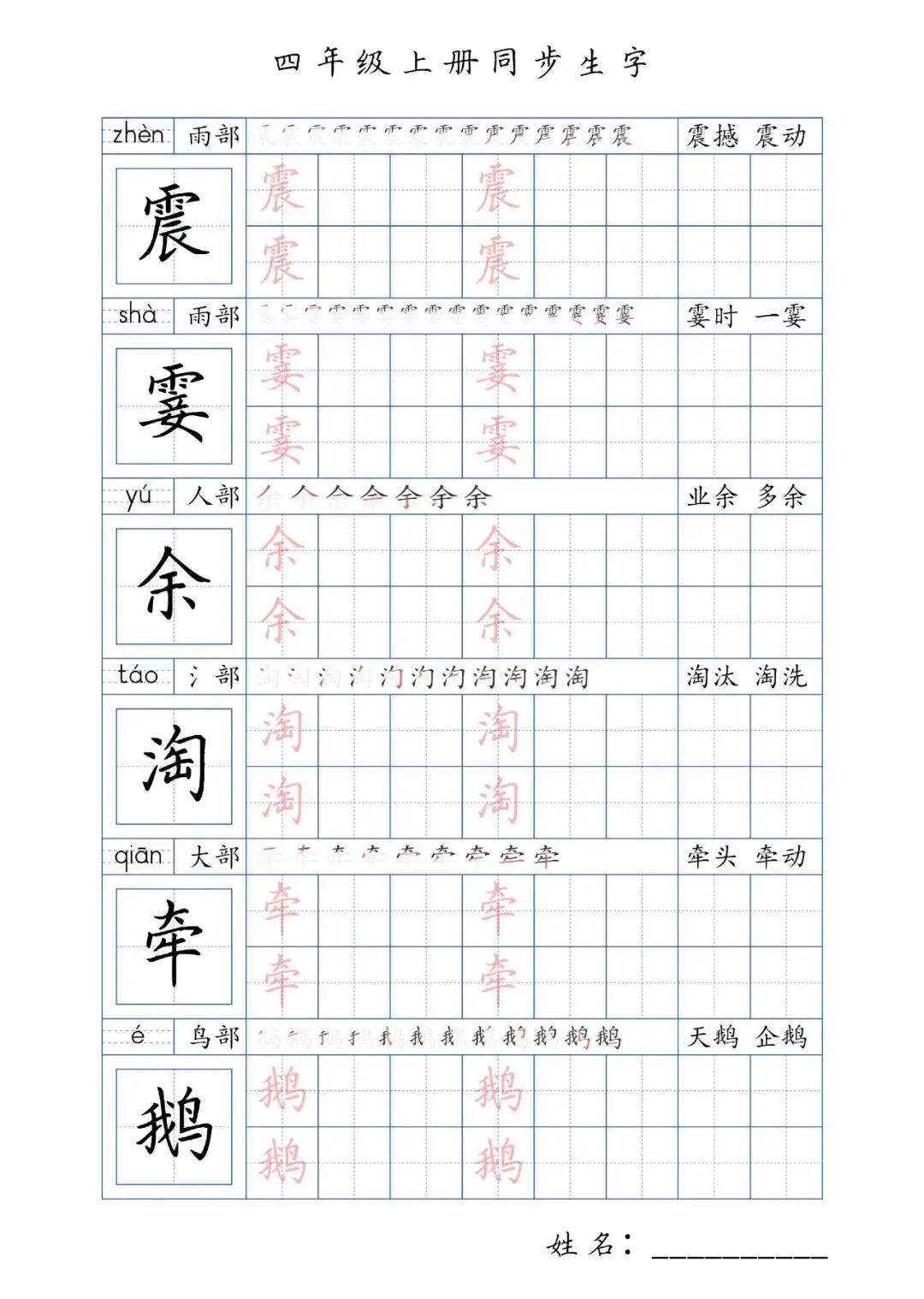 同步生字四年级上册,PDF免费下载