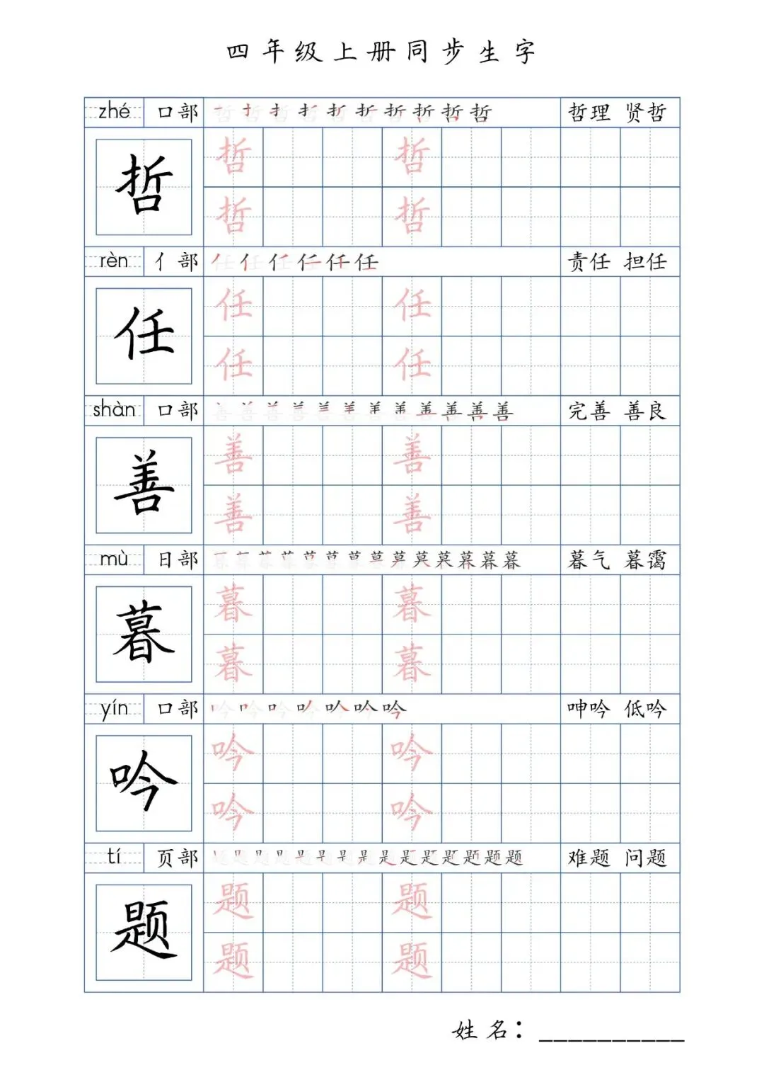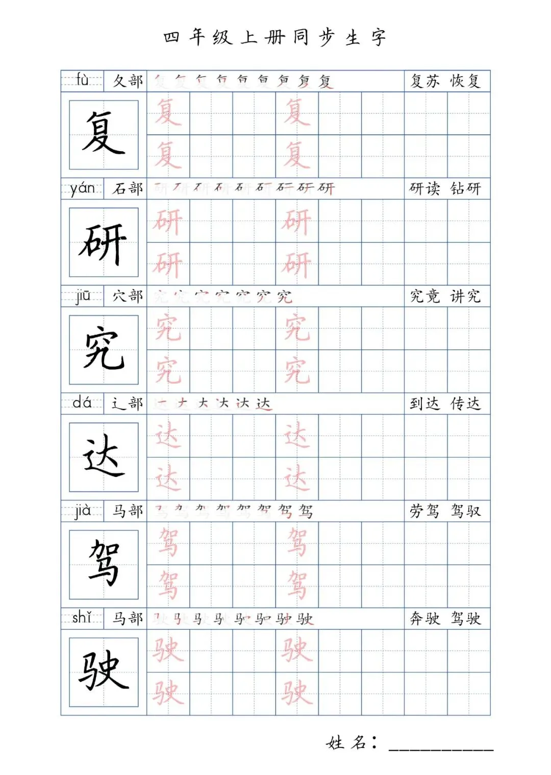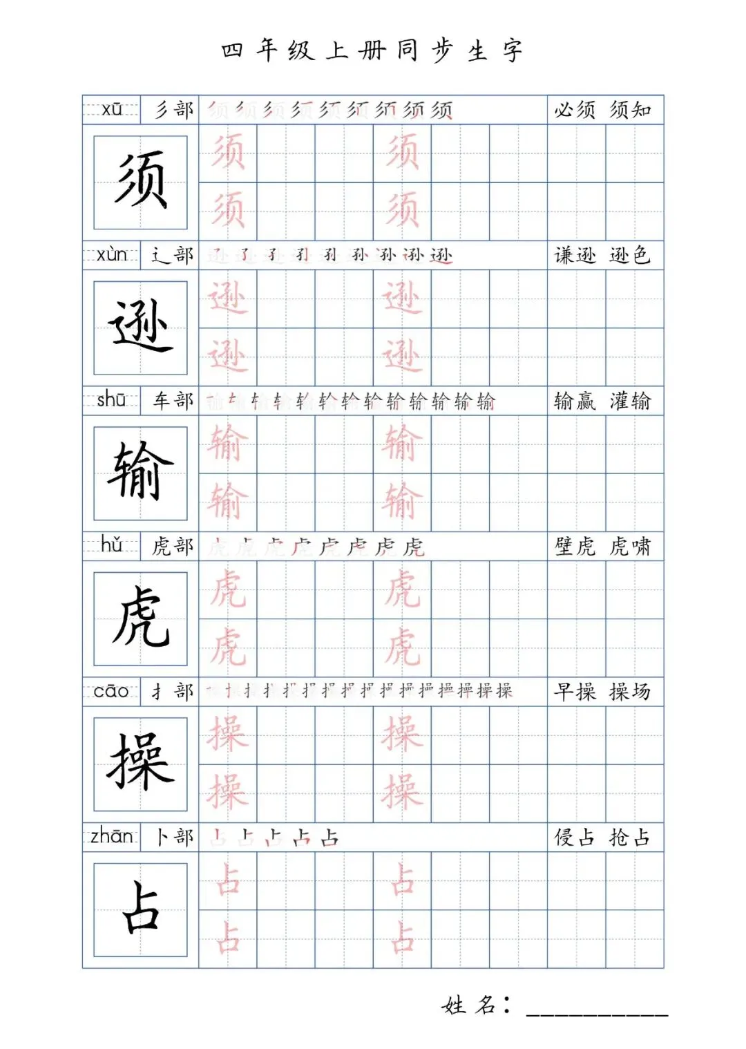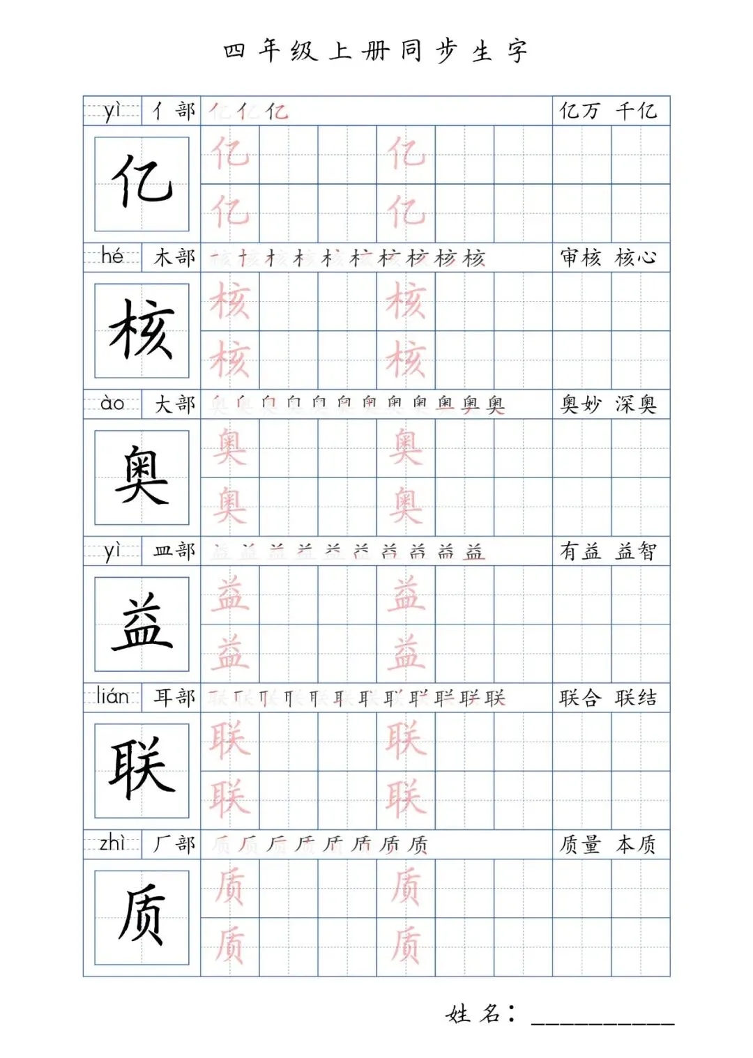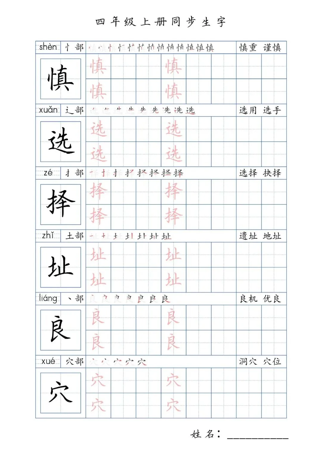 同步生字四年级上册,PDF免费下载