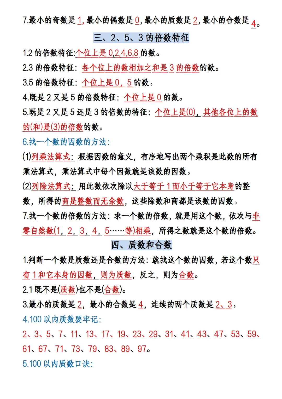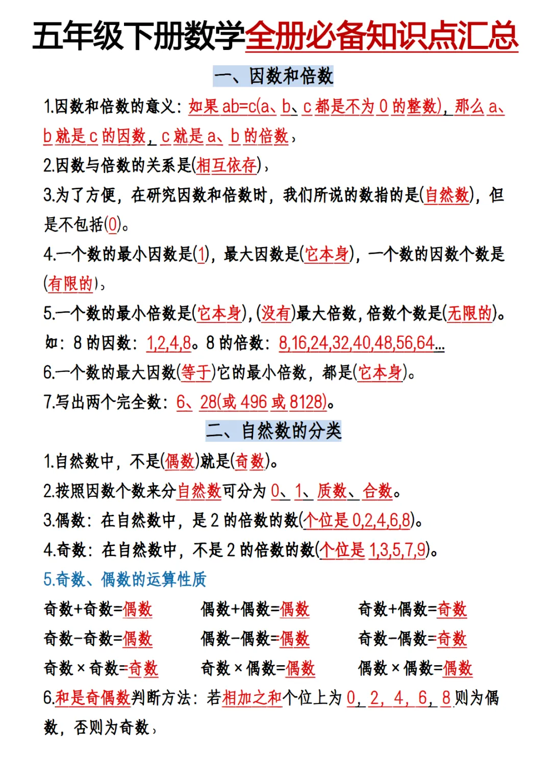 五年级(下)数学 六大必背考点汇总