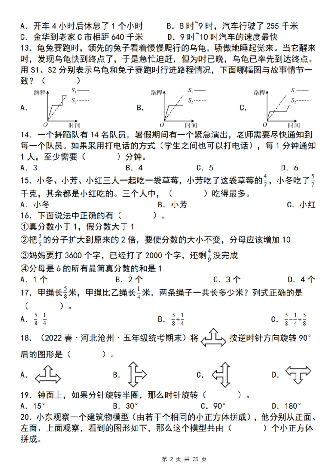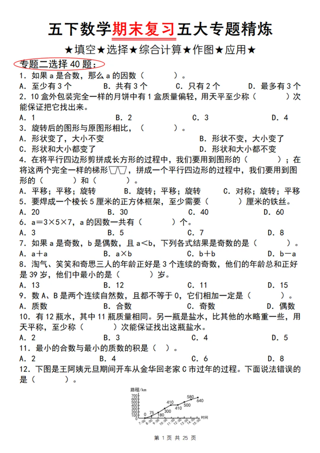 【免费下载】五年级(下)数学 期末复习五大专题精炼(专题二:选择),PDF电子版,可打印
