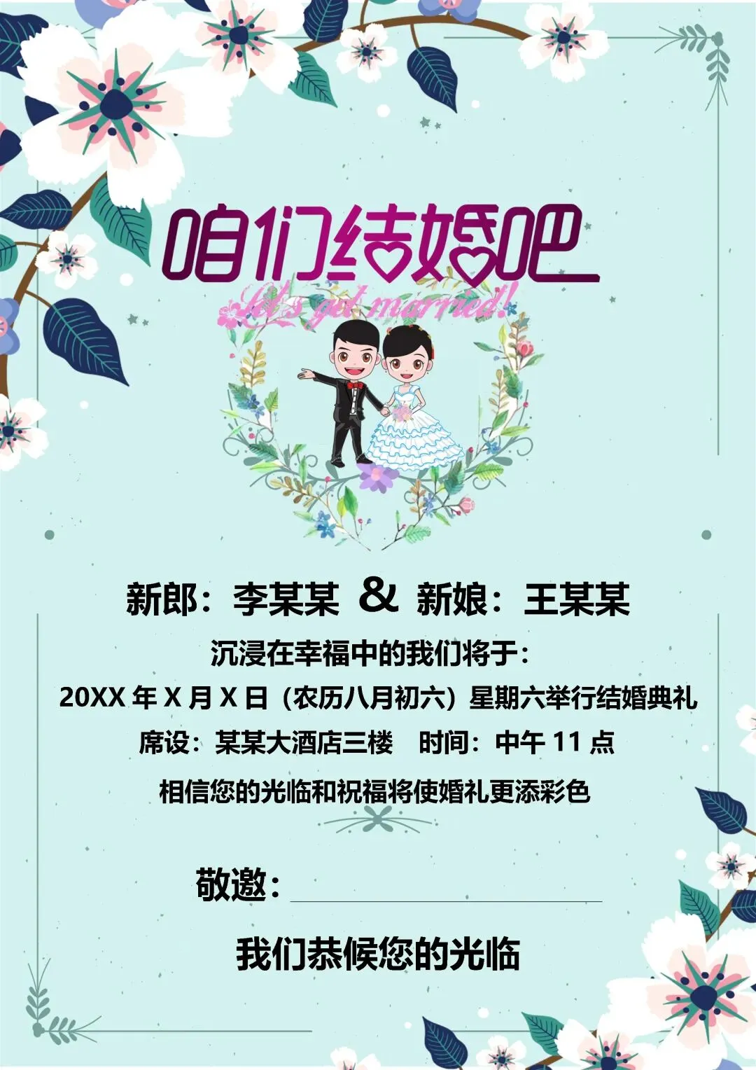本文内容分享【免费结婚请柬模板,可编辑可下载分享】