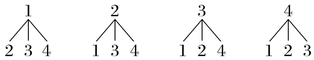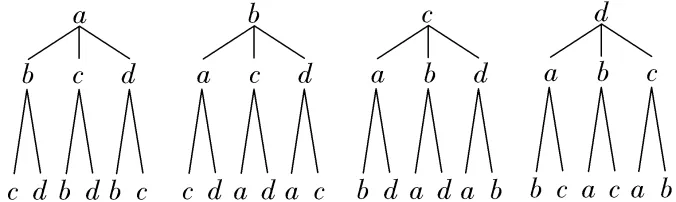 故所有的排列为abc,abd,acb,acd,adb,adc,bac,bad,bca,bcd,bda,bdc,cab,cad,cba,cbd,cda,cdb,dab,dac,dba,dbc,dca,dcb.一共可以组成24个排列.