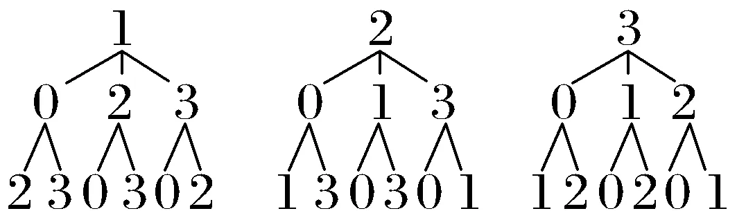 由树状图知,所有的三位数为102,103,120,123,130,132,201,203,210,213,230,231,301,302,310,312,320,321.
