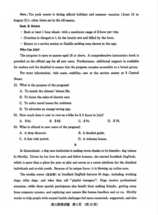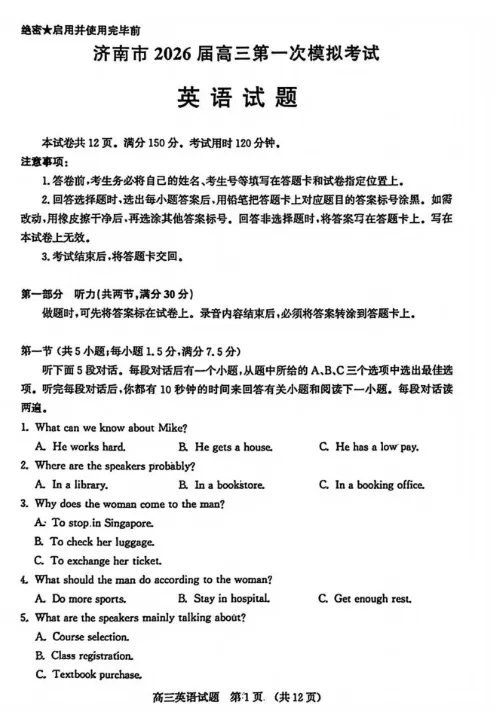 >【免费下载】2026年济南高三【英语】期末/一模真题