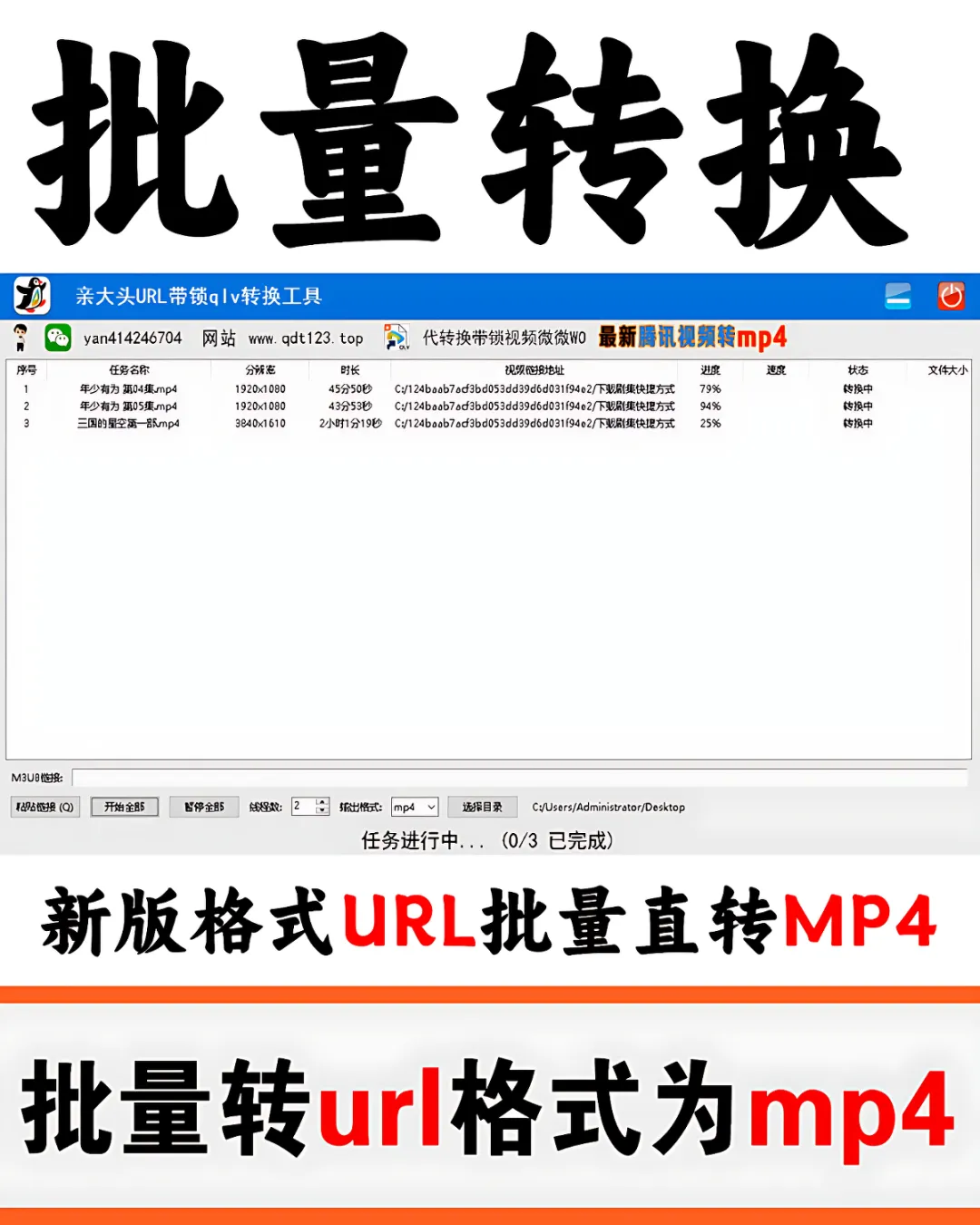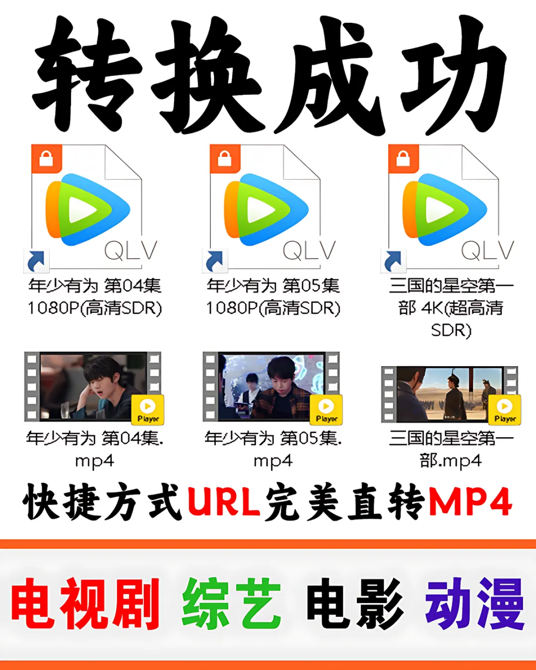 支持转换腾讯新版下载的所有视频格式,电视Y,电Y,综Y,动M等全部的快捷方式URL文件为MP4格式。