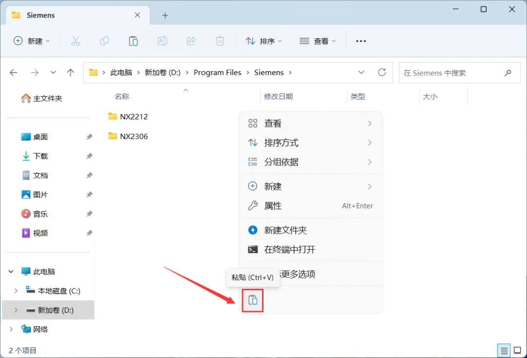 30、回到UG NX 2212文件夹,找到【NX2212】文件夹,右键点击【复制按钮】