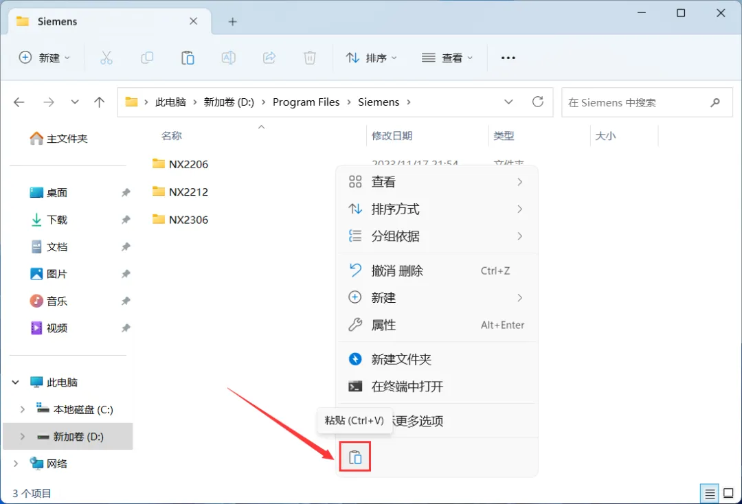 24、回到UG NX 2206文件夹,找到【NX2206】文件夹,右键点击【复制按钮】