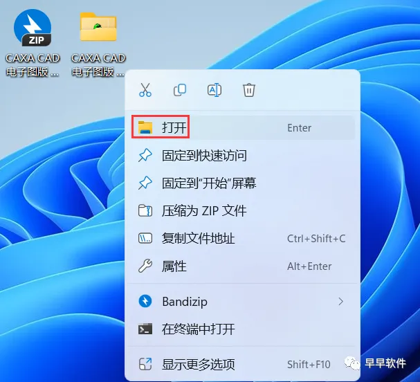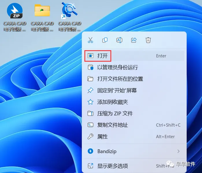 14、回到桌面,右键桌面上的【CAXA CAD电子图版 2023软件图标】,点击【打开】