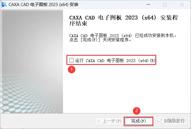 9、不勾选运行CAXA CAD电子图版 2023,再点击【完成】