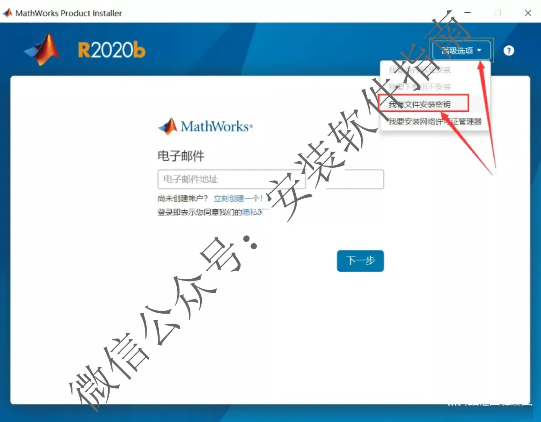 7、点右上角高级选项,点我有文件安装密钥