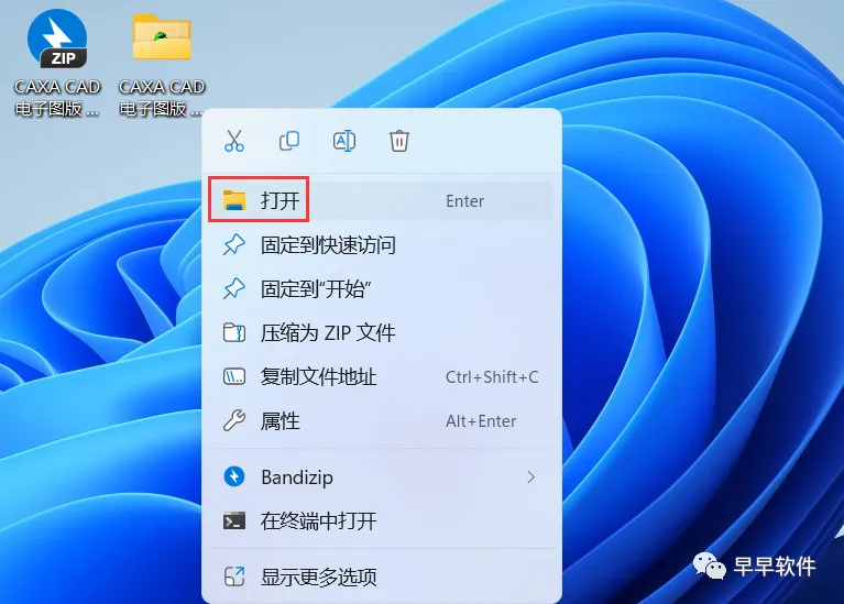 13、回到桌面,右键桌面上的【CAXA CAD电子图版 2019软件图标】,点击【打开】
