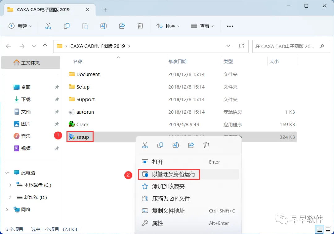 3、找到【setup】应用程序,右键选择【以管理员身份运行】它