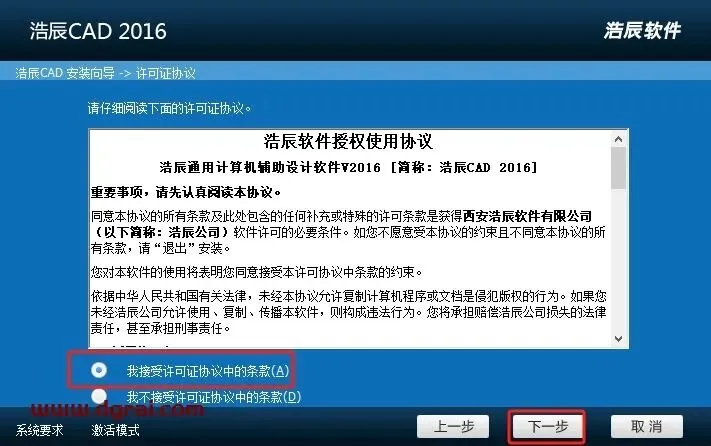 软件许可协议接受勾选,然后下一步