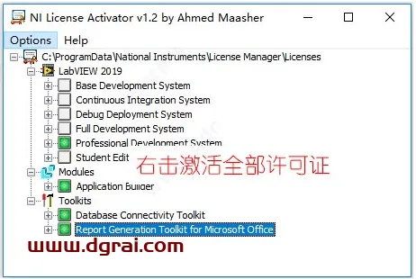 直接运行NI License Activator 1.2.exe激活工具,右键激活全部许可证即可