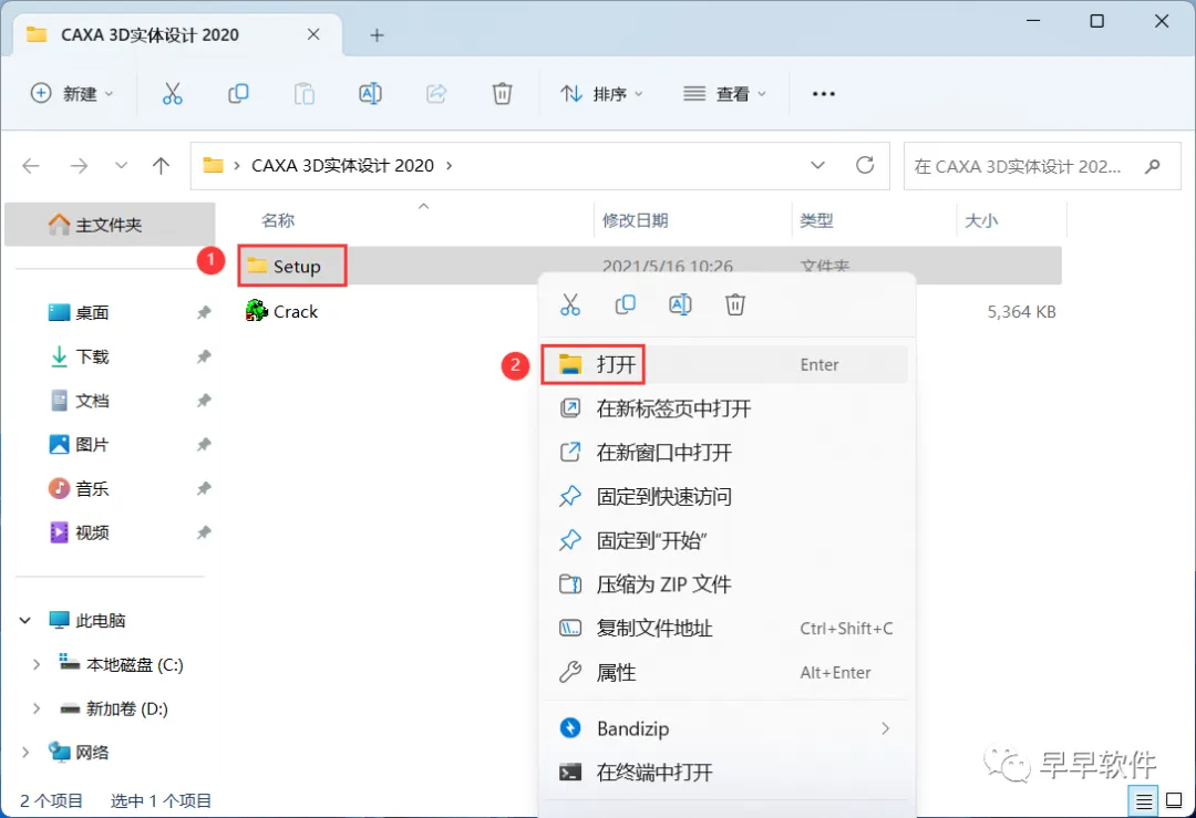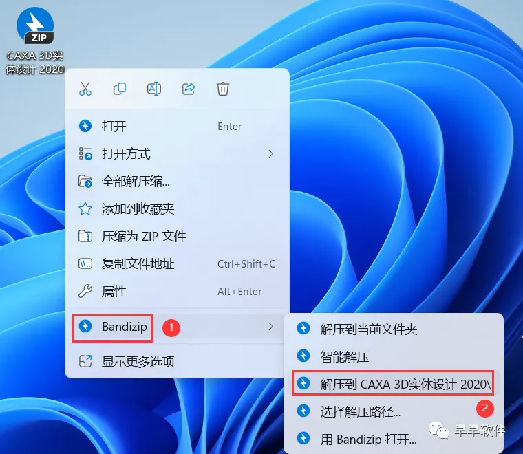 1、下载CAXA 3D实体设计 2020软件安装包到电脑上,右键选择【解压到CAXA 3D实体设计 2020\】