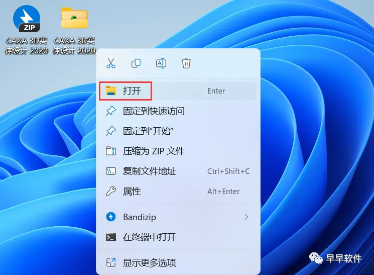 13、回到桌面,右键桌面上的【CAXA 3D实体设计 2020软件图标】,点击【打开】