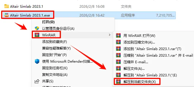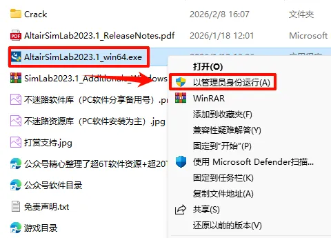 2.打开刚刚解压的文件夹,鼠标右键点击“AltairSimLab2023.1_win64.exe”选择“以管理员身份运行”