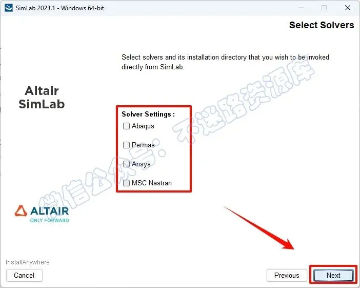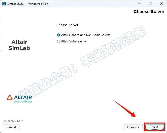 12.指定要使用的非Altair求解器的安装位置,点击“Next”