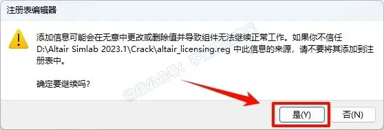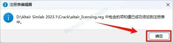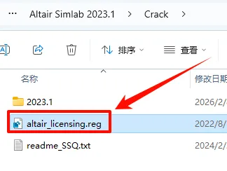 17.返回之前解压的“Altair SimLab 2023.1“文件夹,双击打开”Crack“文件夹,双击运行”altair_licensing.reg“注册表文件