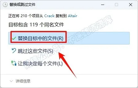 24.点击“替换目标中的文件“(若提示需要权限,勾选“为所有...”,点击“继续”)