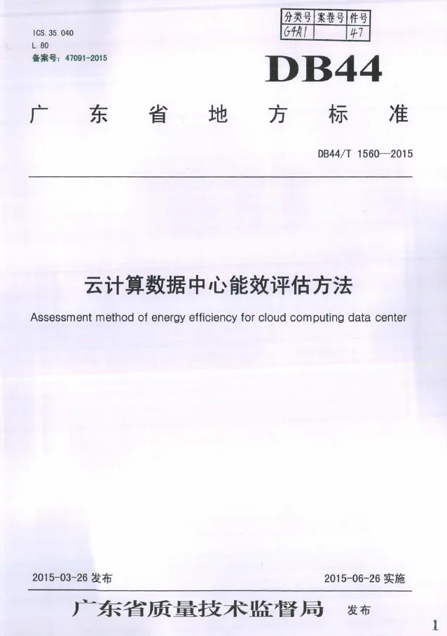 地方标准|《云计算数据中心能效评估方法》DB44/T 1560-2015【附】