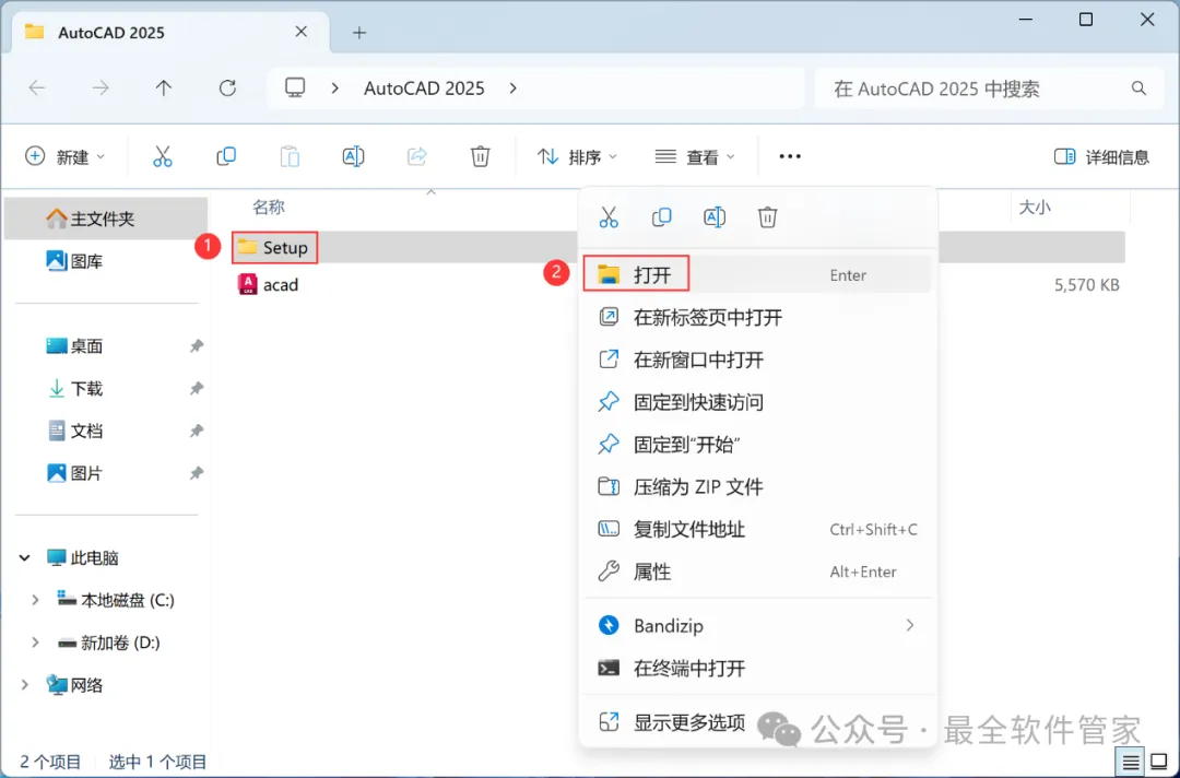 1、下载AutoCAD 2025软件安装包到电脑上,右键选择【解压到AutoCAD 2025\】