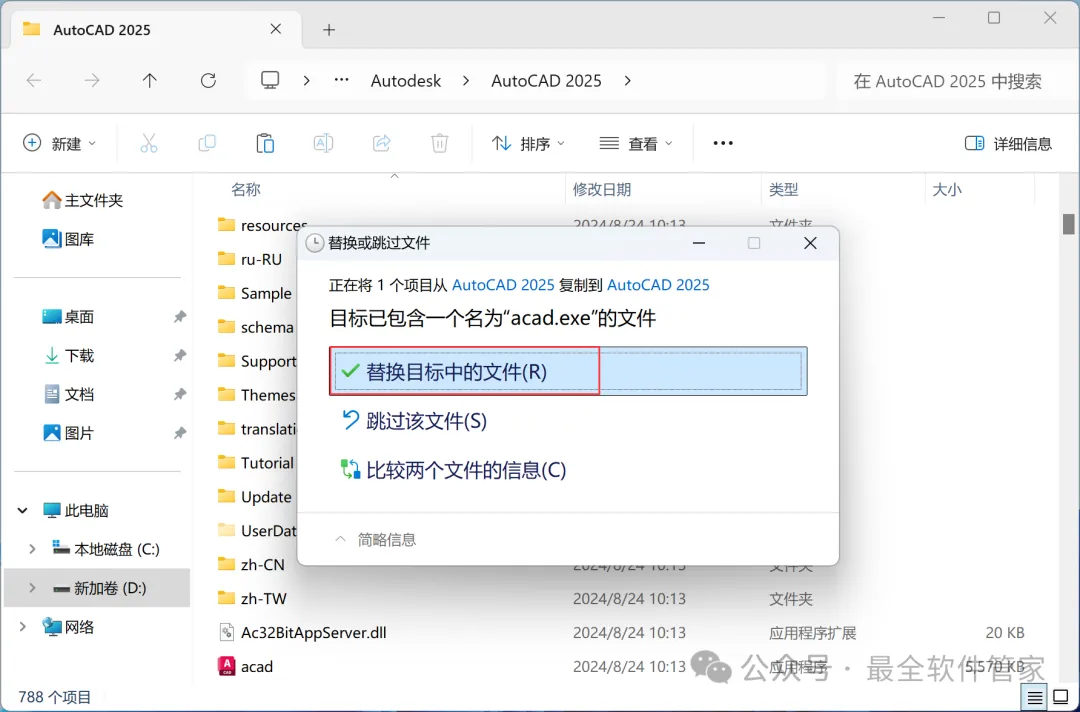10、回到AutoCAD 2025文件夹找到【acad】应用程序,右键点击【复制按钮】