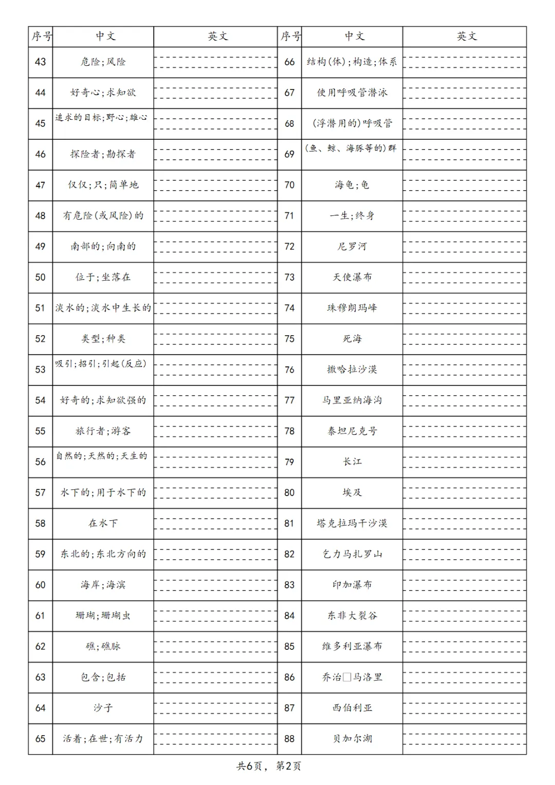 >【免费下载】八年级(下)英语 单词4-6默写练习,PDF电子版,可打印