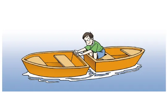 1. 如图所示,人坐在小船上,在用力向前推另一艘小船时,人和自己坐