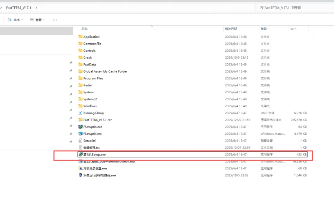2、打开解压后的【FastTFT64_V17.1】文件夹,右击【第1步,Setup】,选择【以管理员身份运行】。