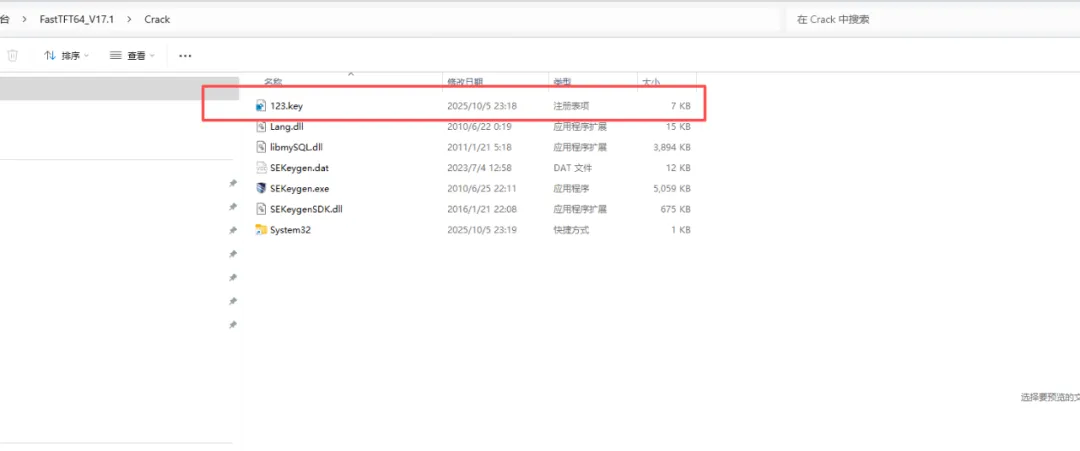 16、进入【Crack】文件夹内,复制【123key】文件。