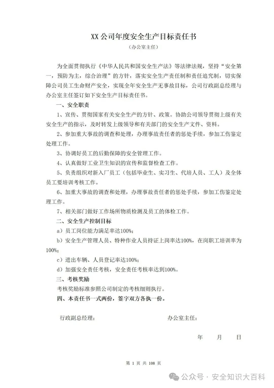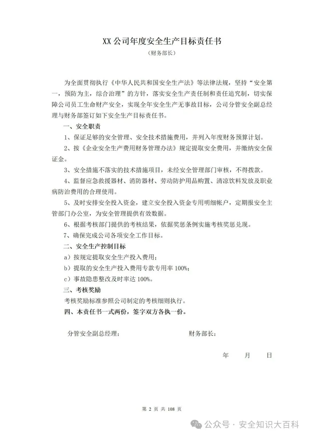 >免费下载!2026全员安全生产责任制范本附2026各岗位安全生产目标责任书层层签订参考模板